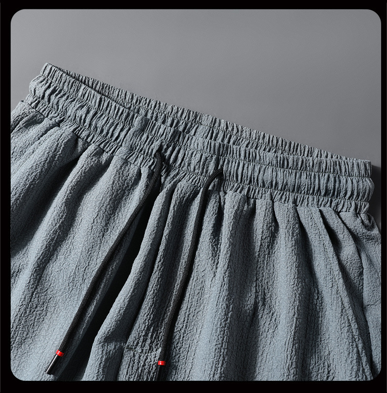夏季冰丝新款亚麻薄款休闲裤男士直筒贴标韩版宽松大码运动九分裤