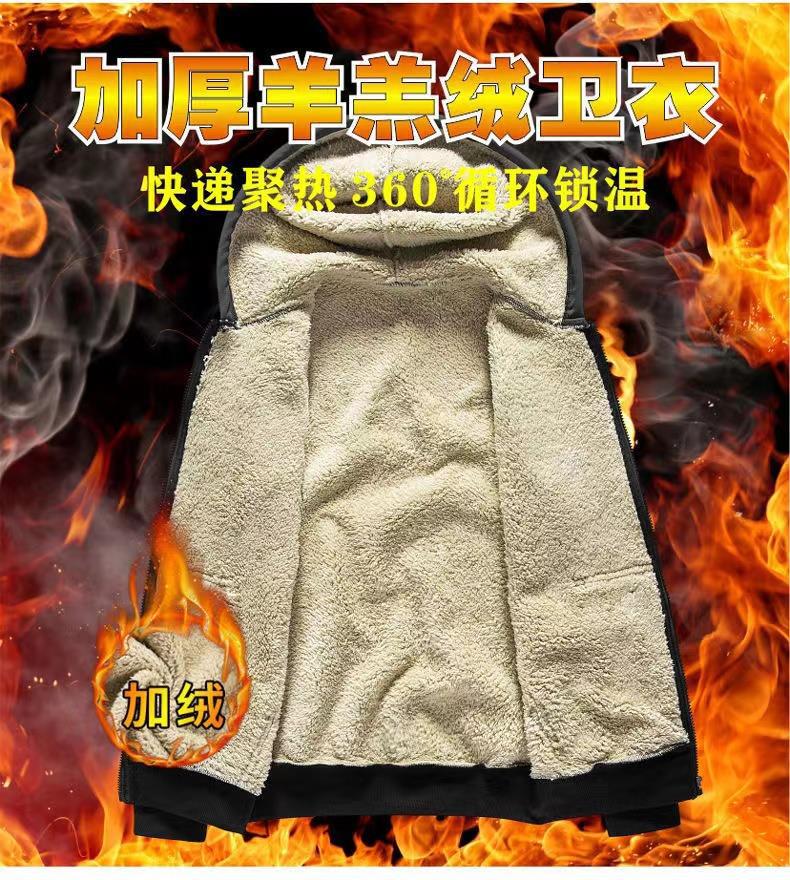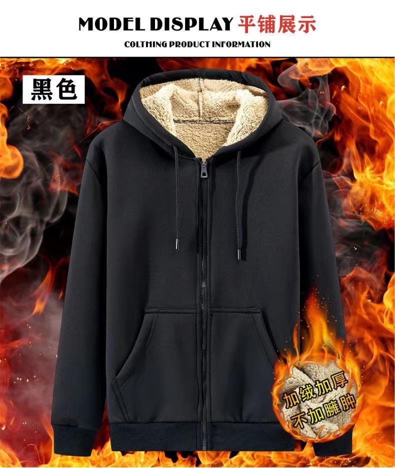 2024秋冬加绒加厚休闲潮拉链开衫卫衣男士纯色宽松大码连帽外套服