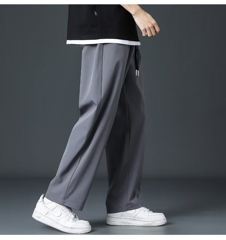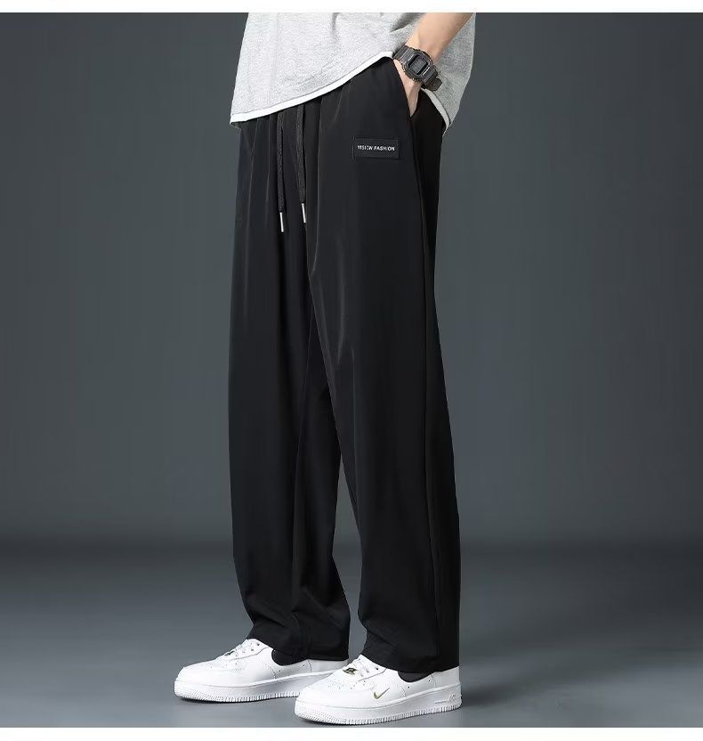 夏季冰丝薄款裤子男大码直筒裤长裤宽松九分裤学生夏天阔腿休闲裤