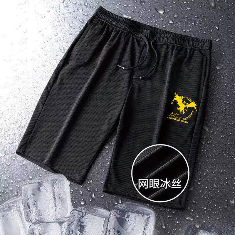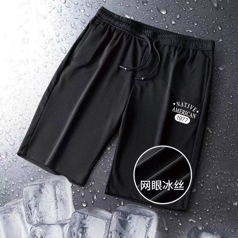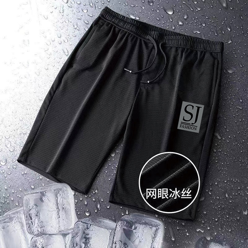 夏季2022薄款休闲裤运动短裤男速干弹力大码网眼冰丝裤印花五分裤