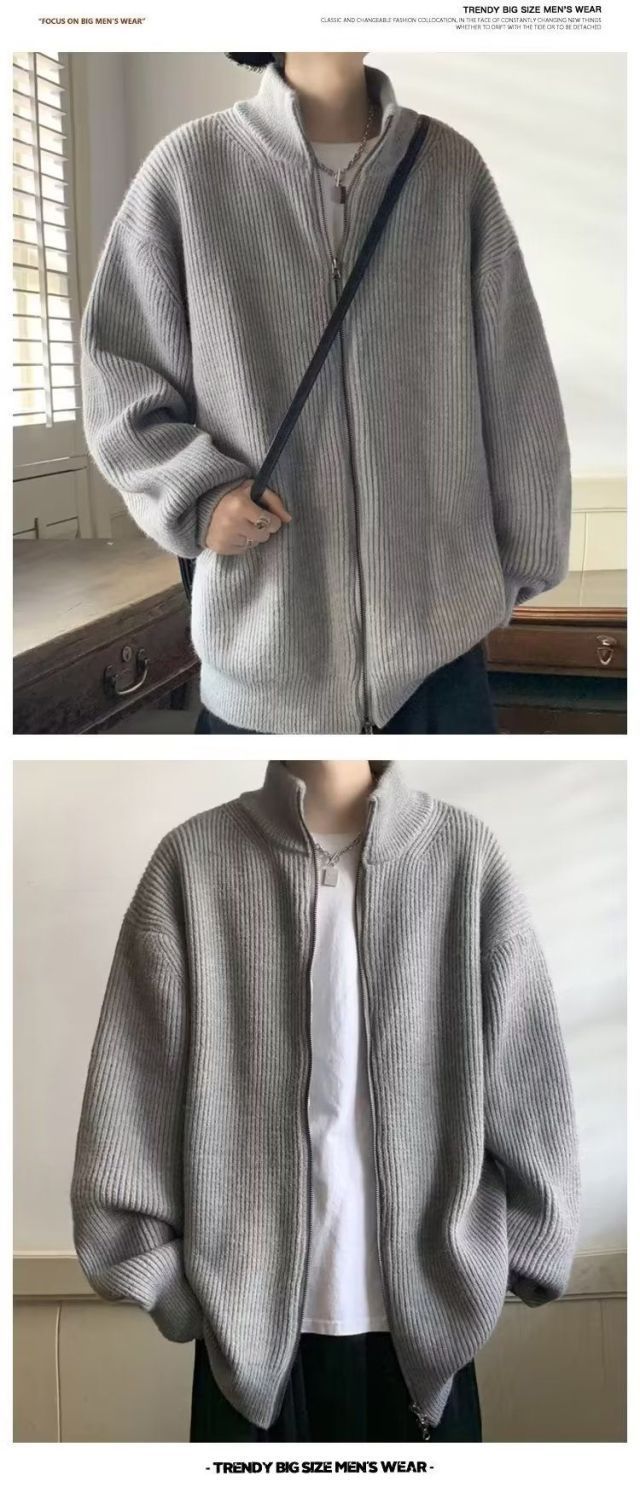 开衫毛衣男春秋季日系复古宽松慵懒风针织衫外穿男士拉链线衣外套
