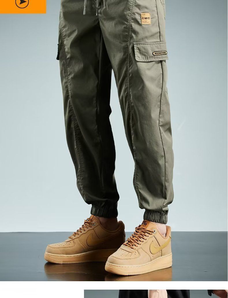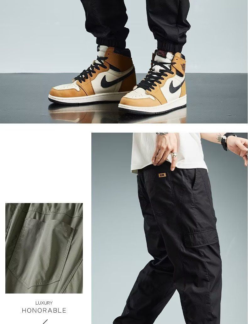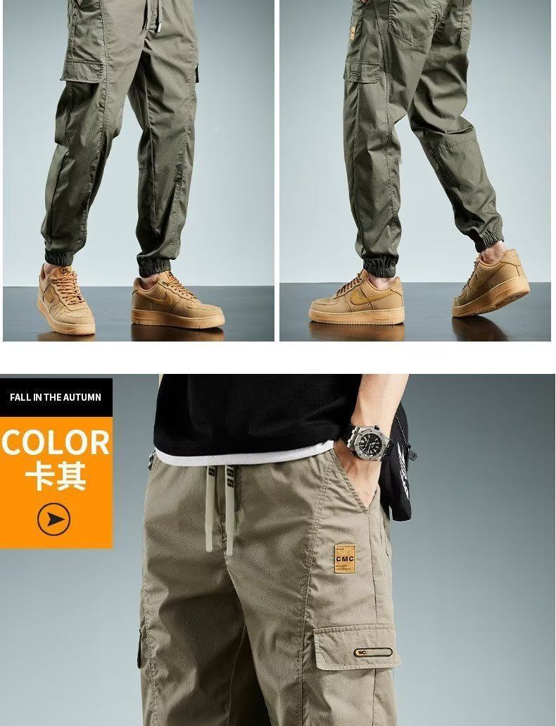 裤子男潮牌痞帅工装休闲裤男士秋季新款帅气束脚裤口袋宽松九分裤