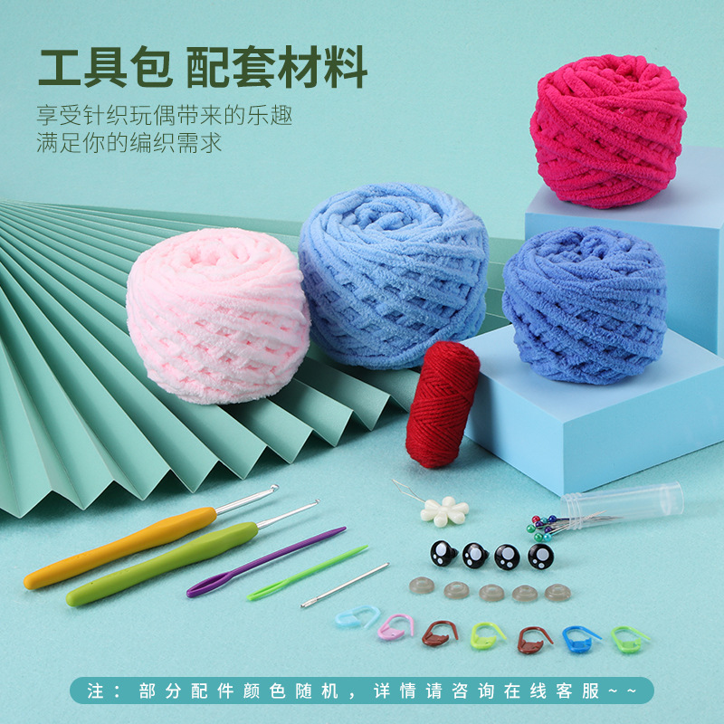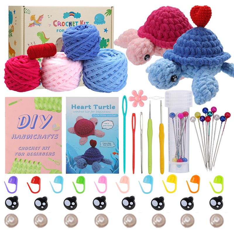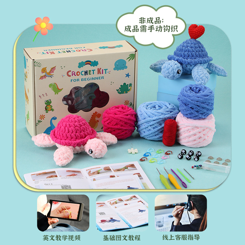 跨境新款DIY手工乌龟钩针材料包 冰条棉毛线材料包 玩偶英文图解