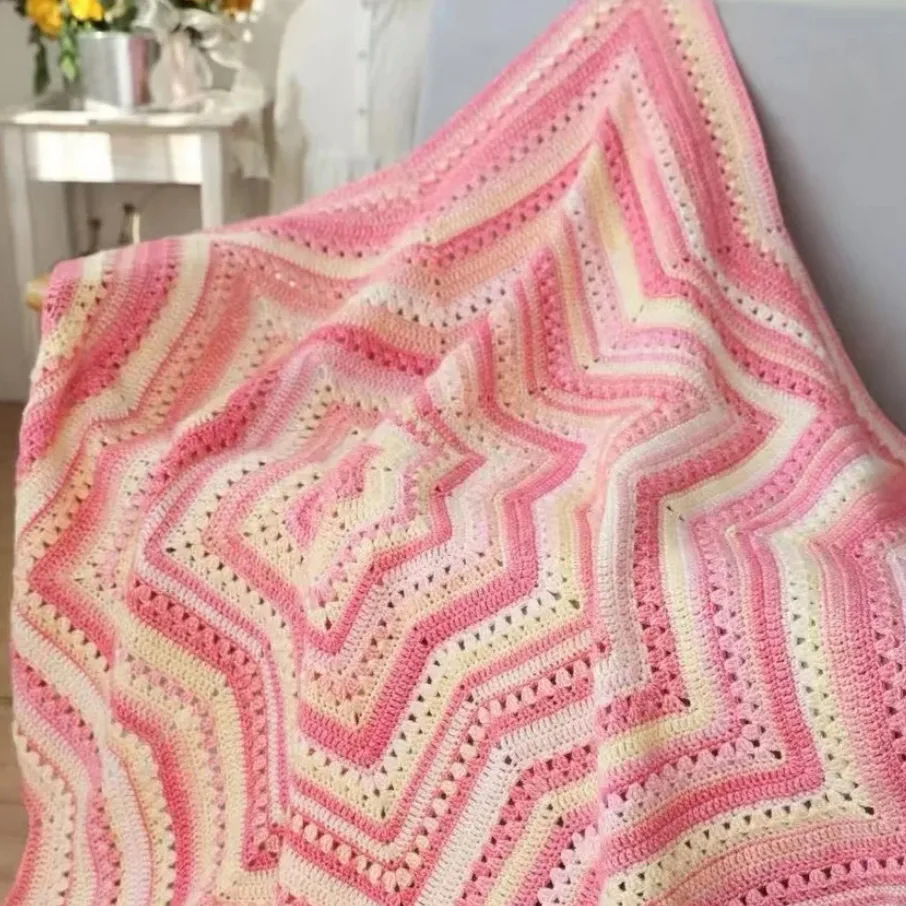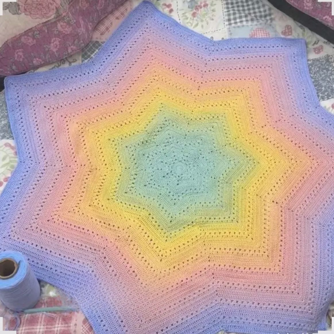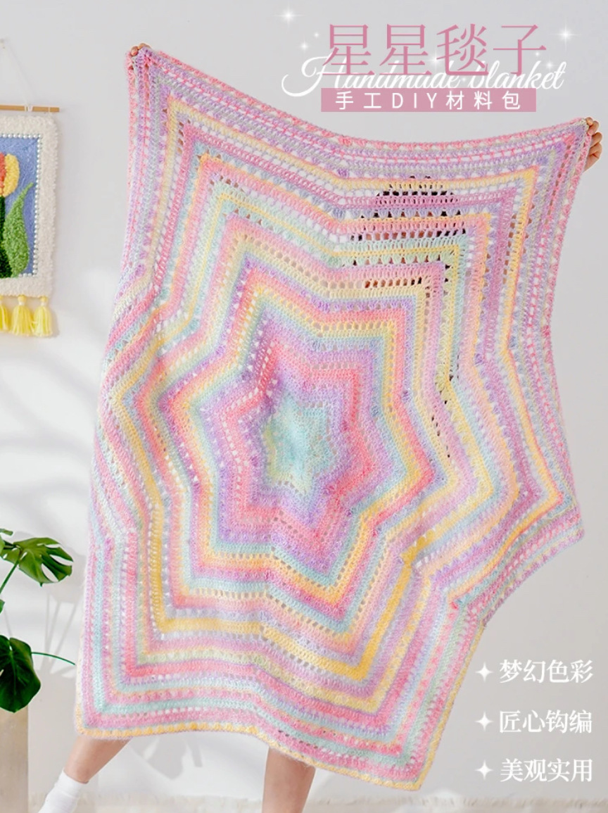 抖音同款渐变七星毯毛线钩针手工diy编织星星毯子渐变色马海毛线
