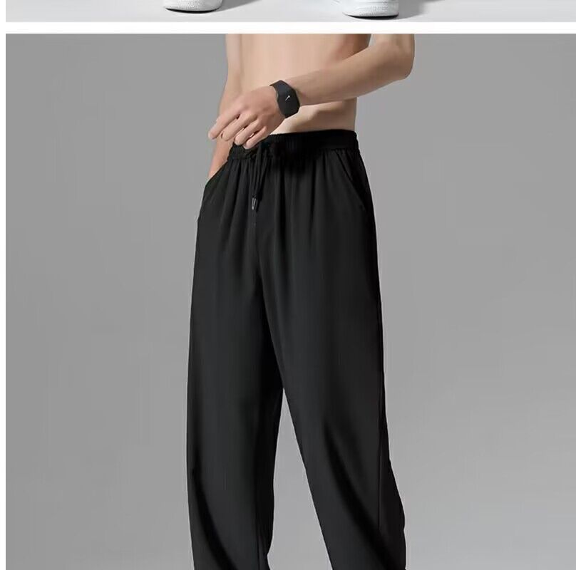 夏季薄款冰丝裤子男直筒裤男生潮流宽松九分裤学生夏天阔腿休闲裤