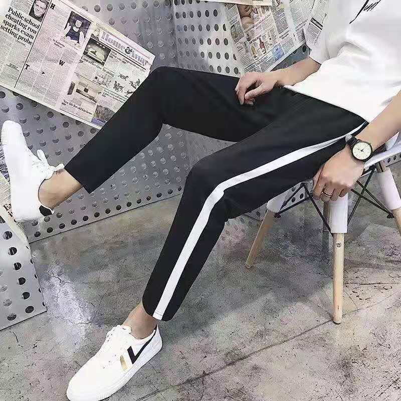 地摊夏季薄款大码运动裤男工作裤子弹力宽松休闲九分束脚胖子长裤