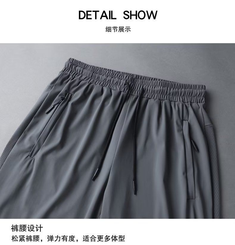 夏季薄款冰丝裤男士运动裤宽松休闲裤空调速干青年大码束脚裤子男