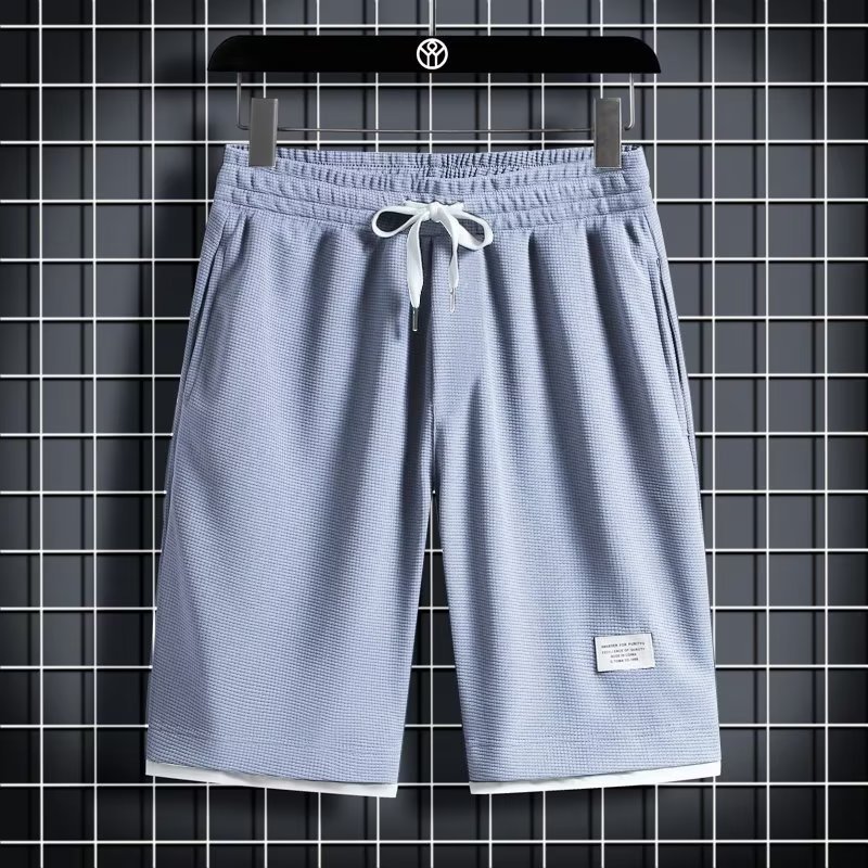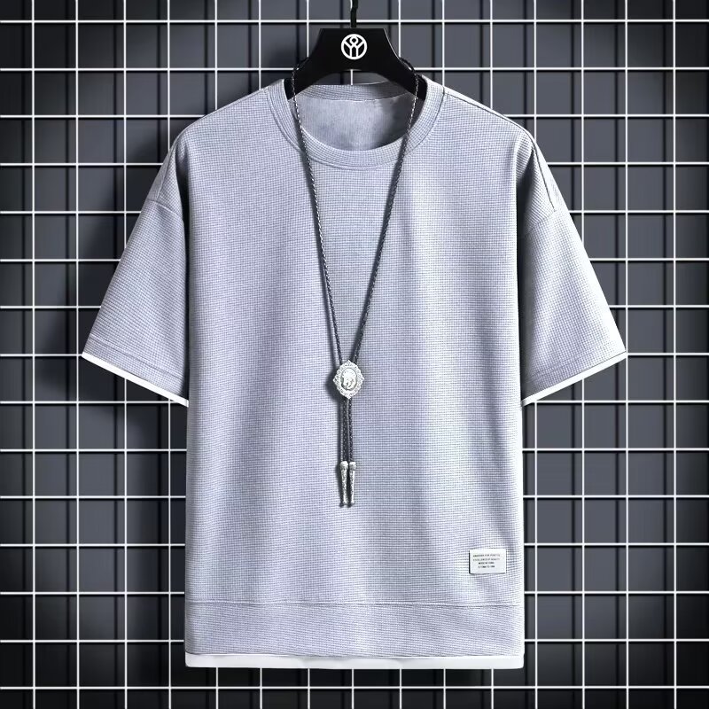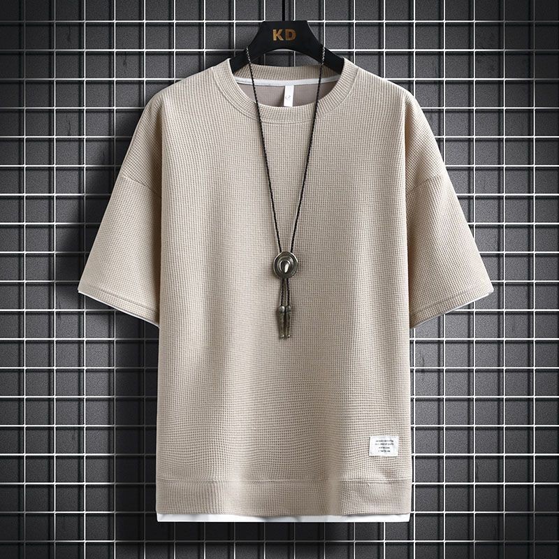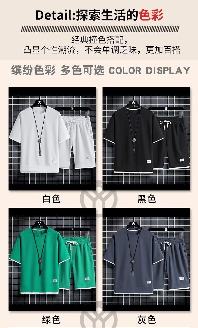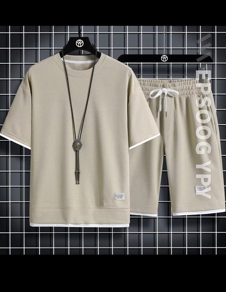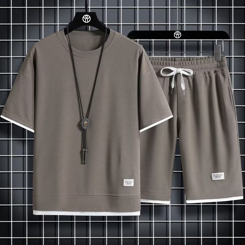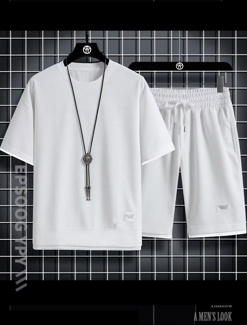 华夫格夏季休闲运动服宽松套装男士装夏天韩版潮流短袖t恤两件套
