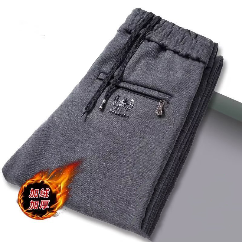 干活穿的商务休闲西裤男士秋冬季新款加绒裤保暖直筒拉链刺绣长裤