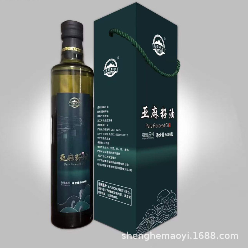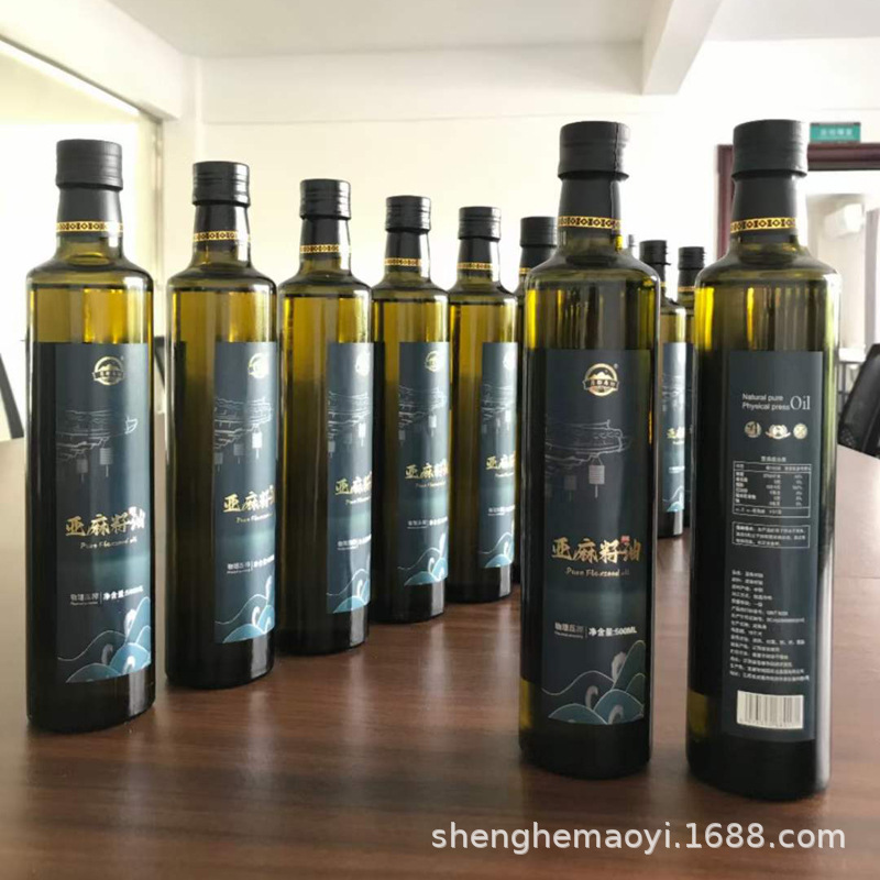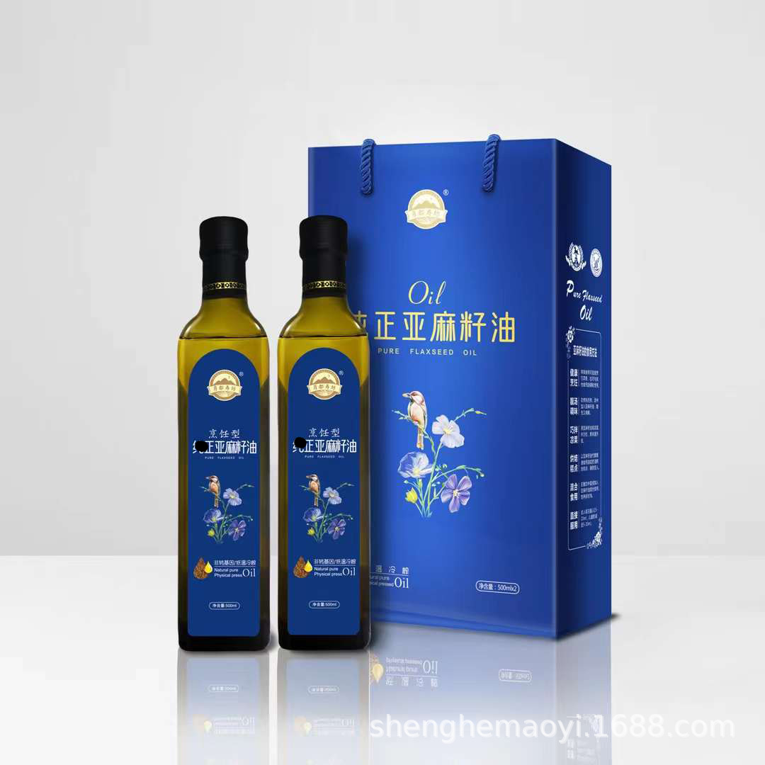 亚麻籽油500ml冷榨亚麻食用油玻璃瓶装旅游销会展礼盒会销礼品