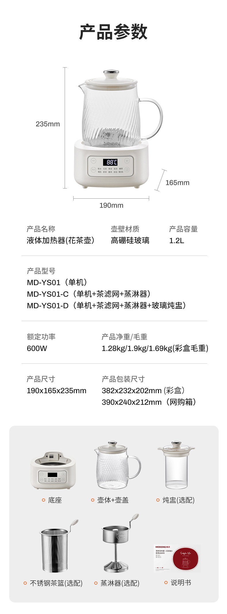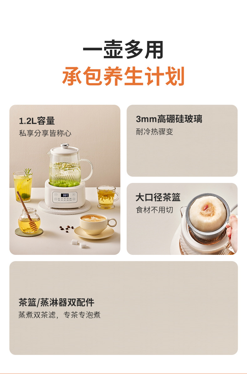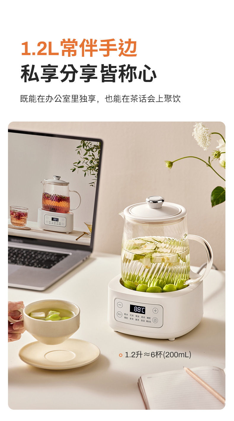 摩动全玻璃养生壶家用多功能全自动办公室煮茶器电热水壶花茶壶