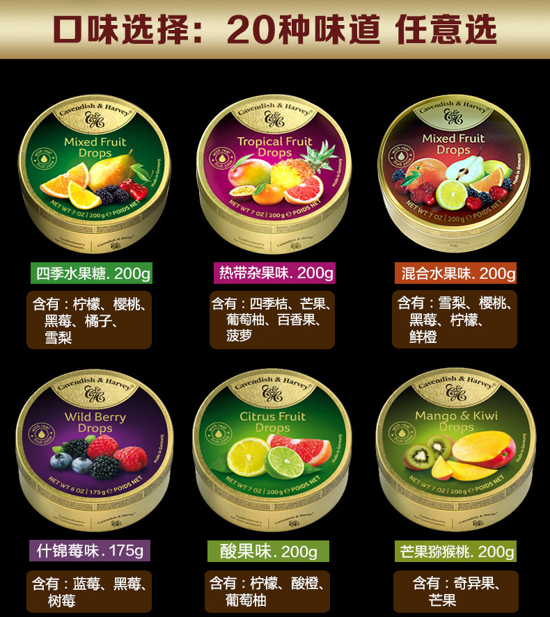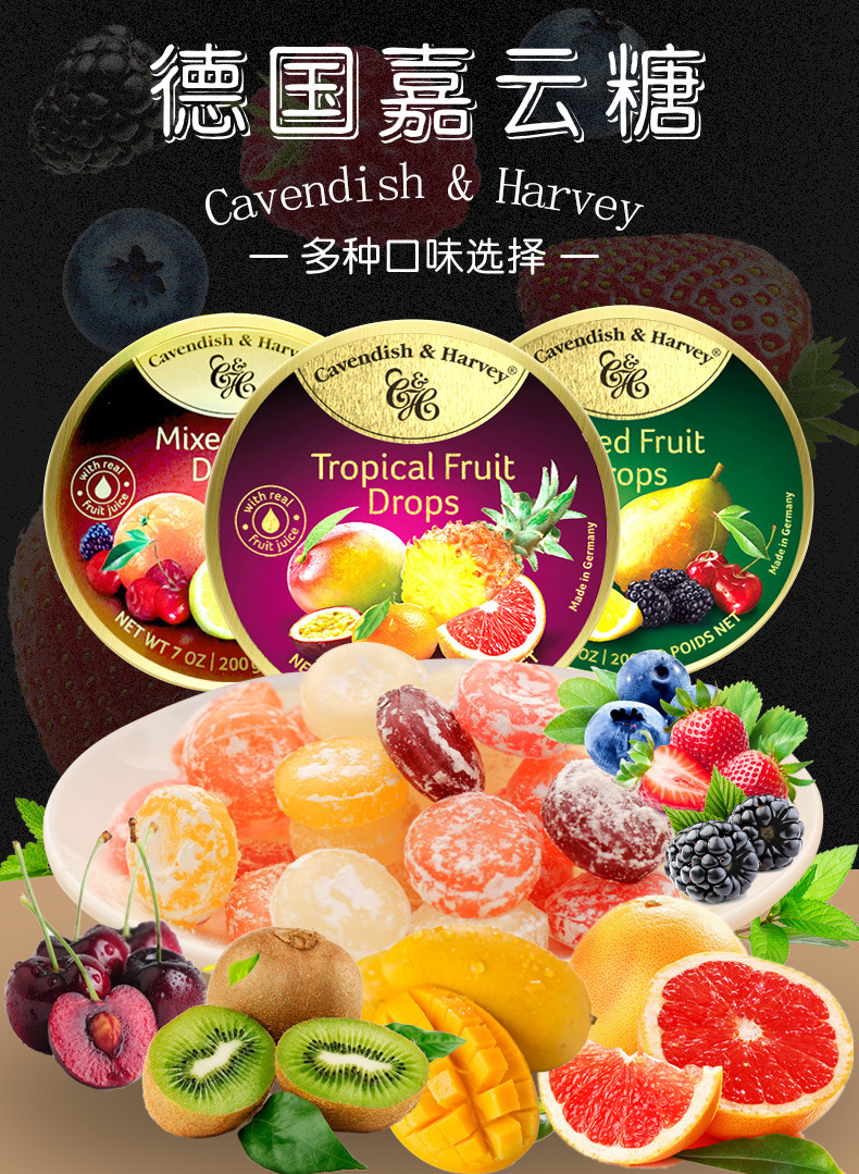 德国嘉云水果糖嘉云糖混合水果味薄荷糖硬糖网红喜糖零食