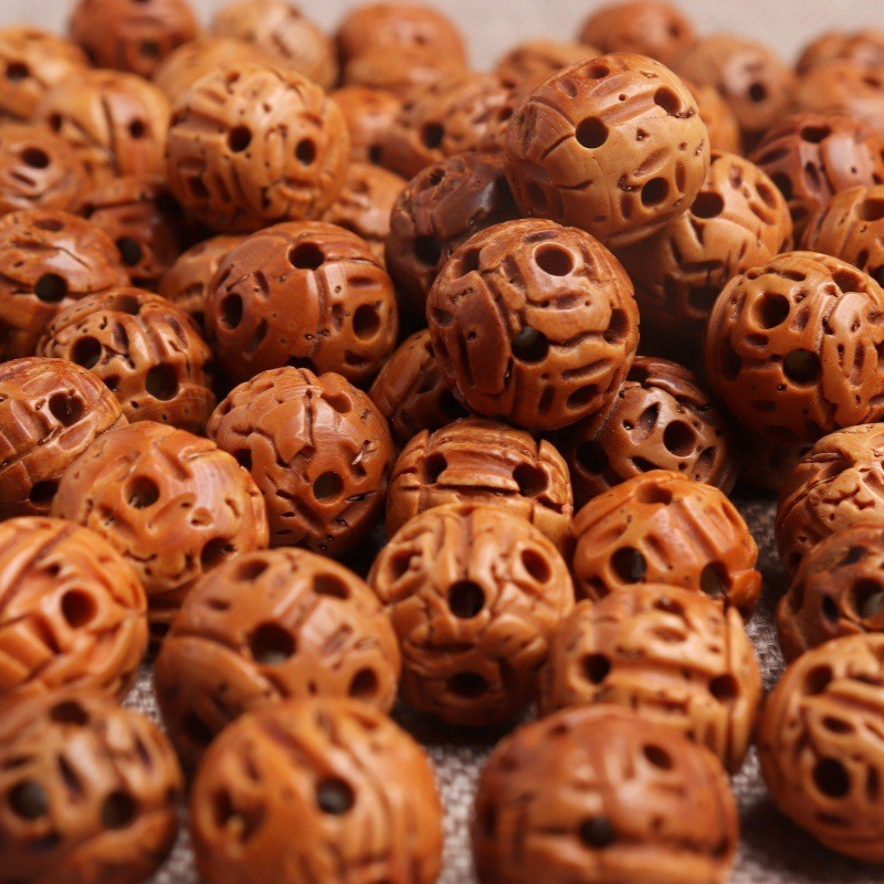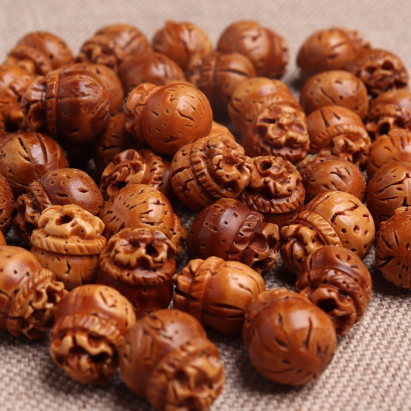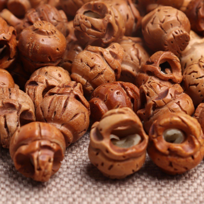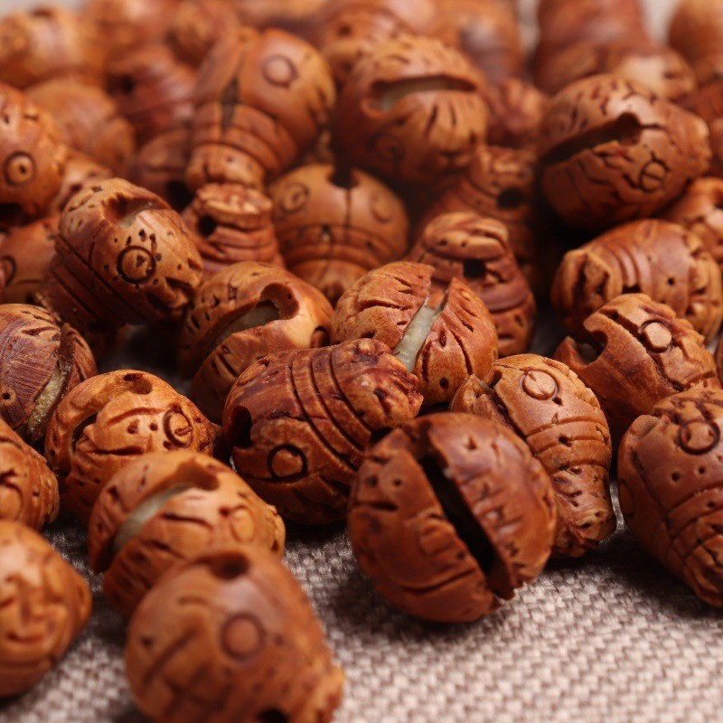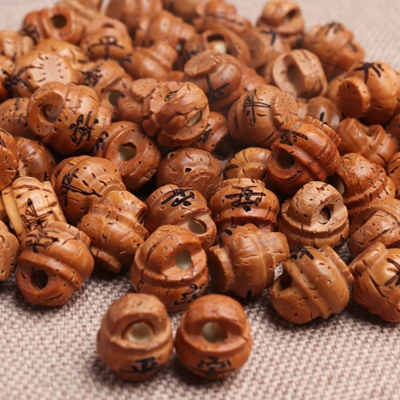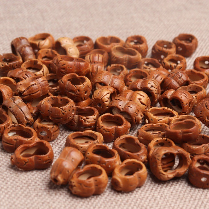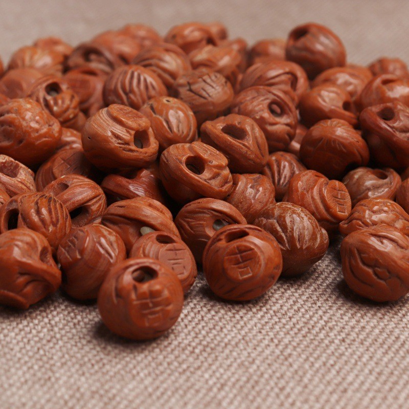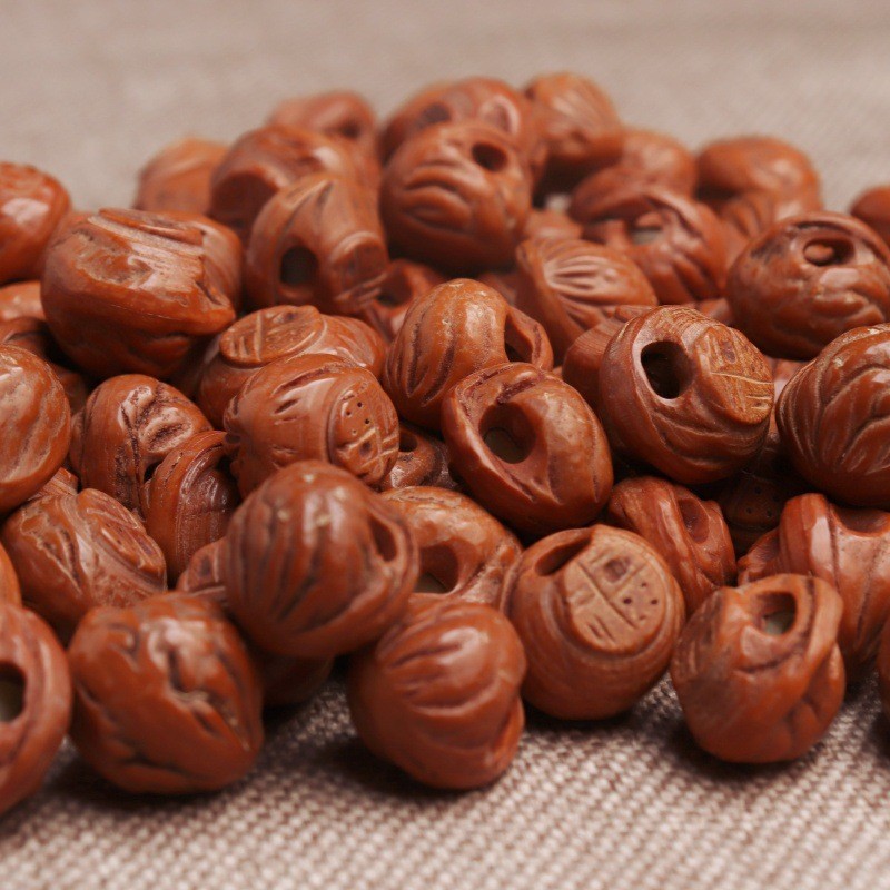 批发桃核雕刻摇篮红绳手链配件婴儿宝宝配珠饰品野生桃木手工桃筐