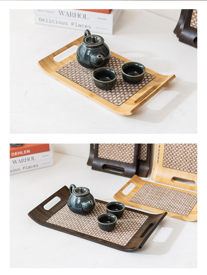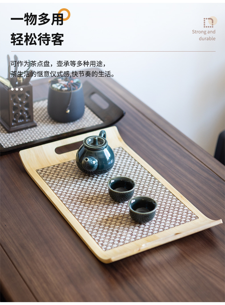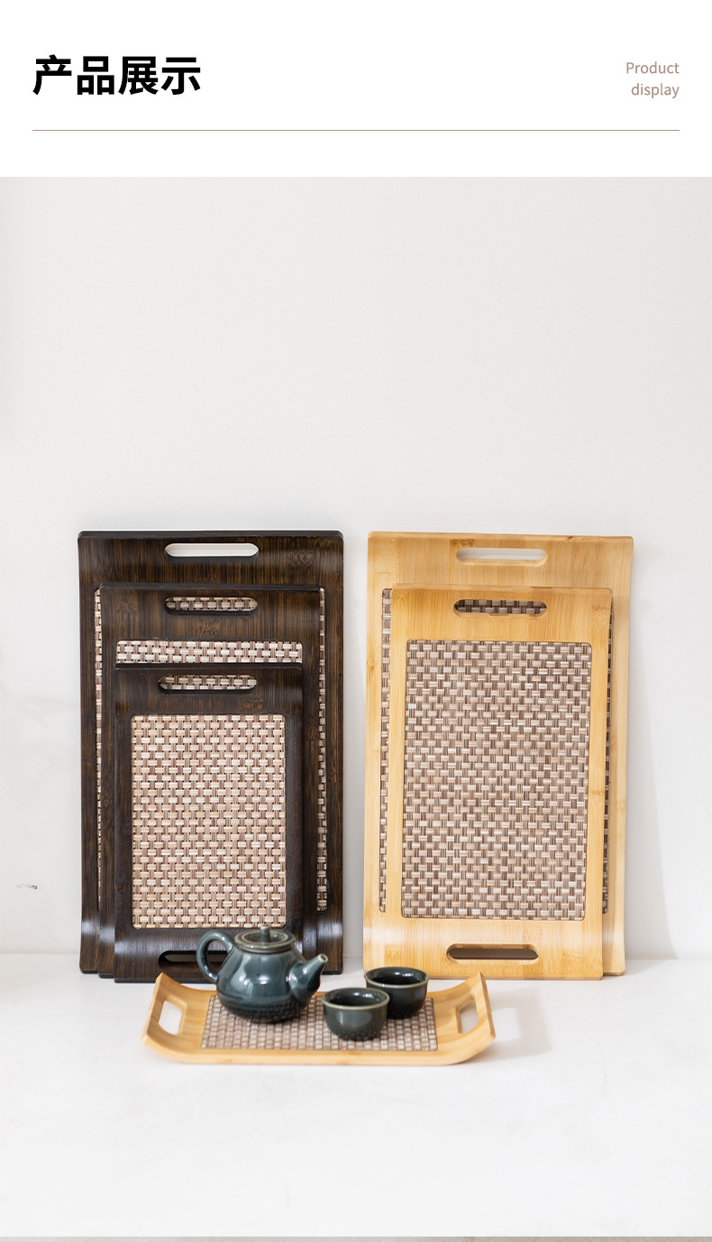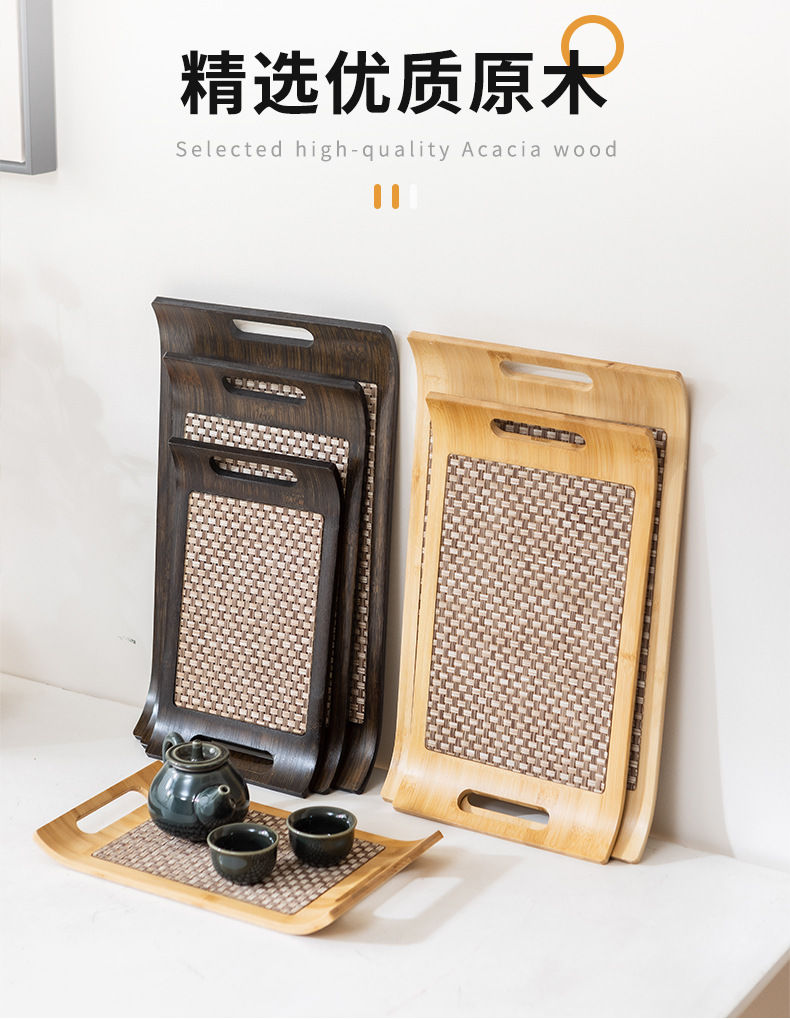 家用高端木质托盘复古轻奢席面收纳茶盘竹制原色蛋糕糕点食物餐盘