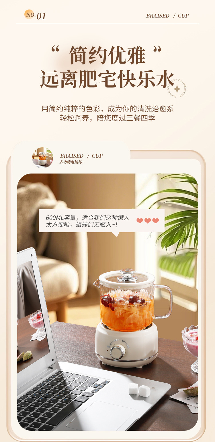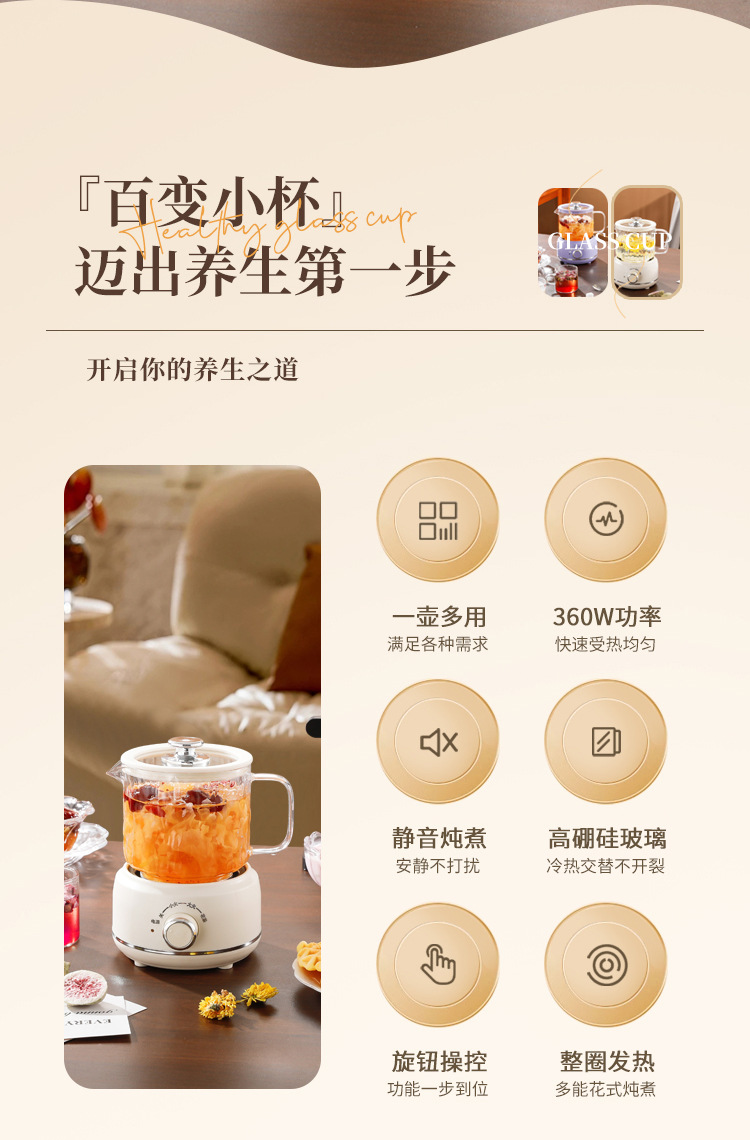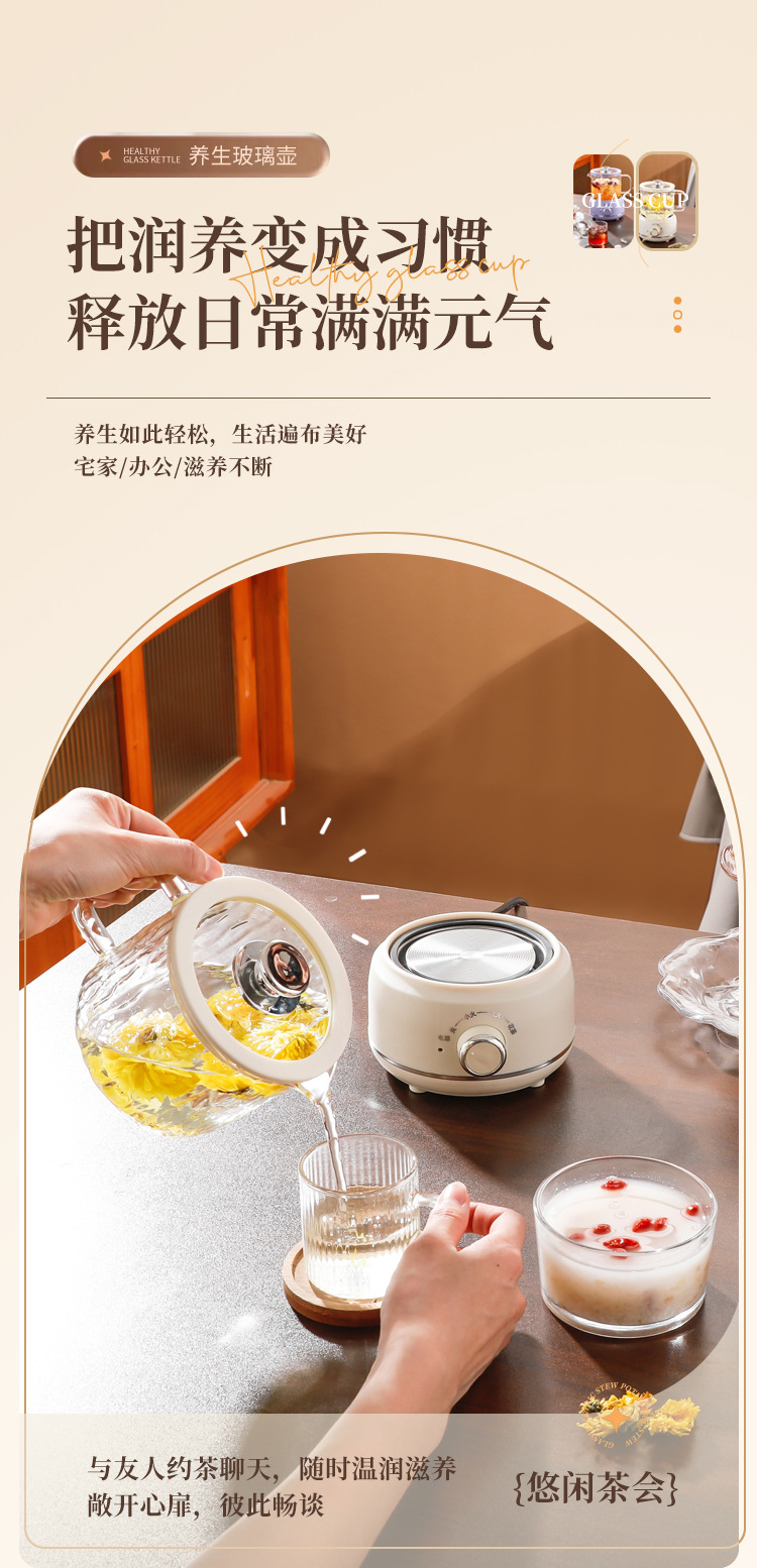 一人养生杯办公室礼盒小型烧水全玻璃煮茶壶养生壶家用多功能