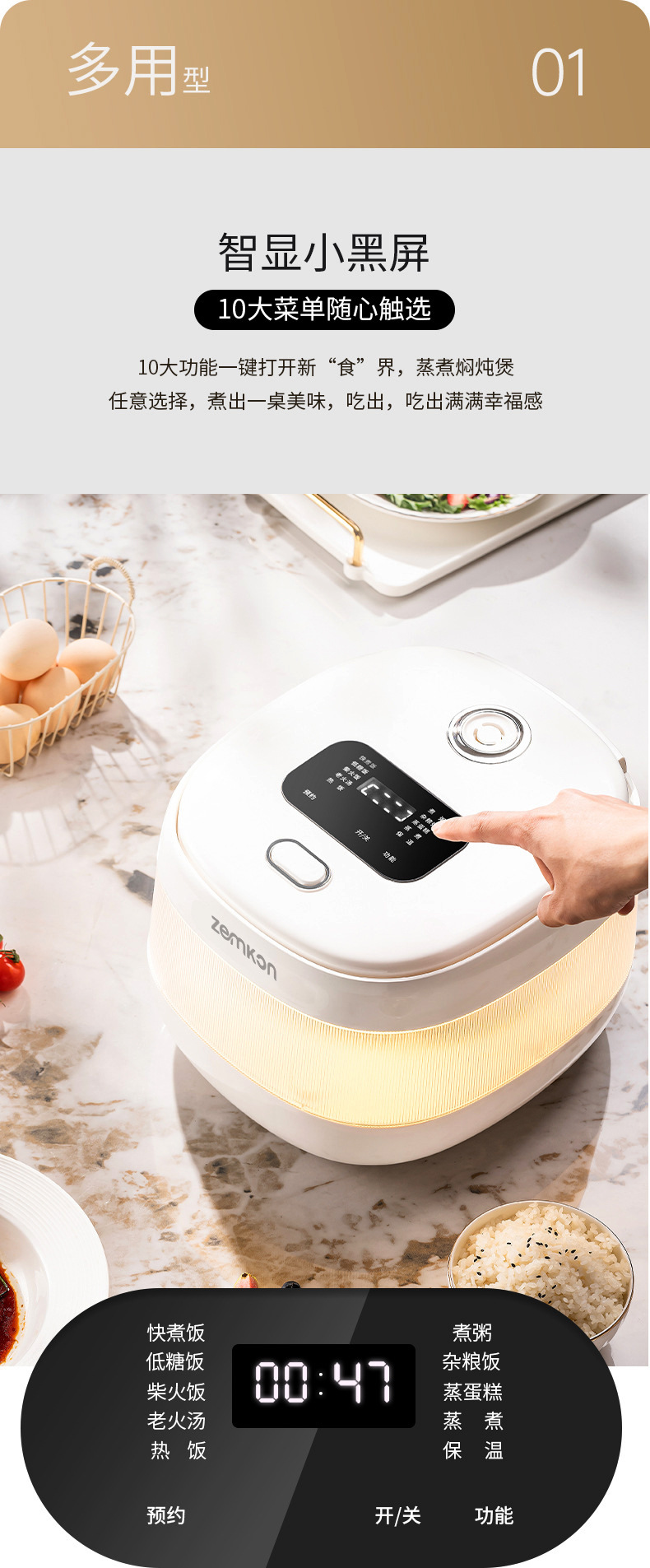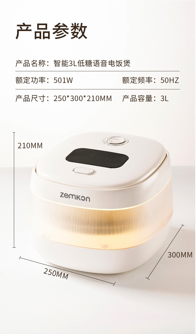 德国Zemkon家用电饭煲AI智能语音多功能3L电饭锅钛胆3到4人煲汤锅