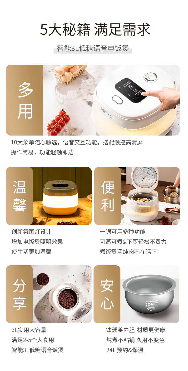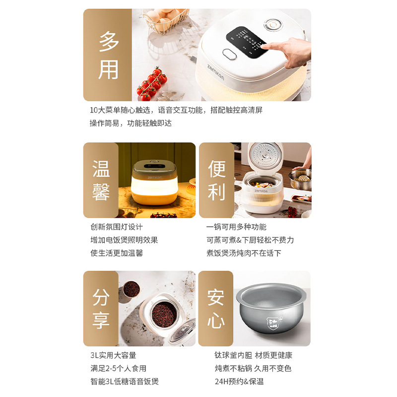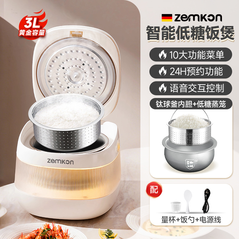 德国Zemkon家用电饭煲AI智能语音多功能钛胆米汤分离3到4人电饭锅
