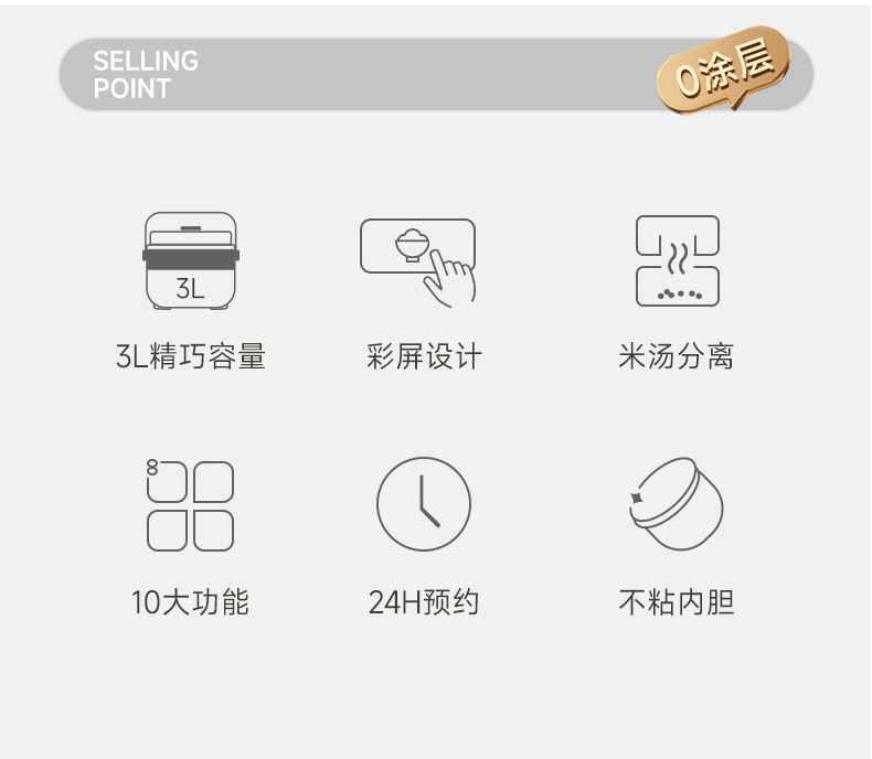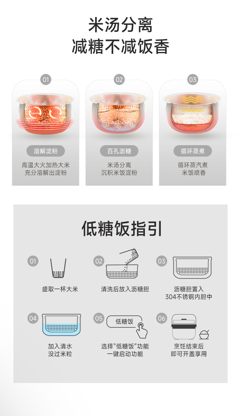 德国Zemkon电饭煲迷你3-4人米汤分离陶瓷釉内胆4一5人智能电饭锅