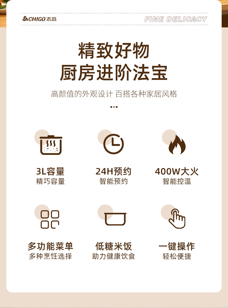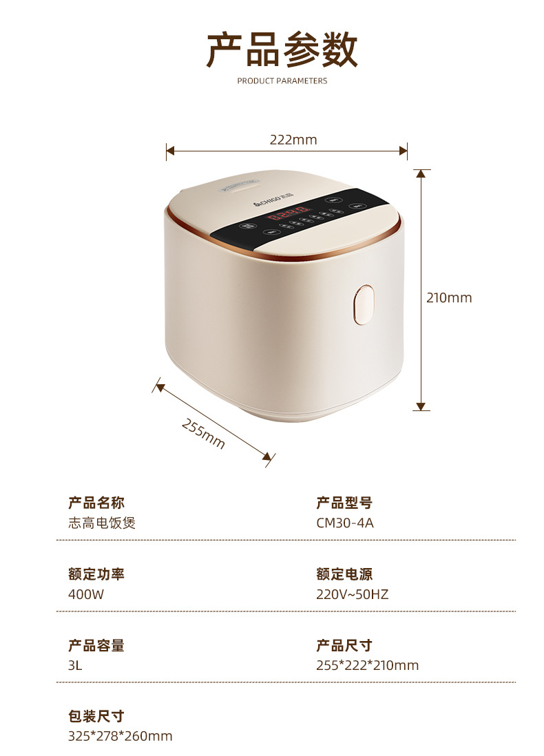 志高电饭煲3升家用3~4人智能预约不粘锅米汤分离一体电饭锅代发