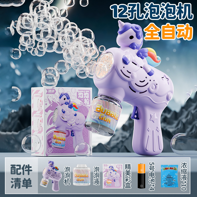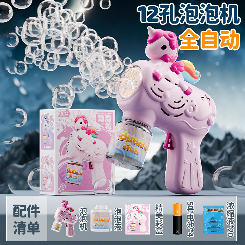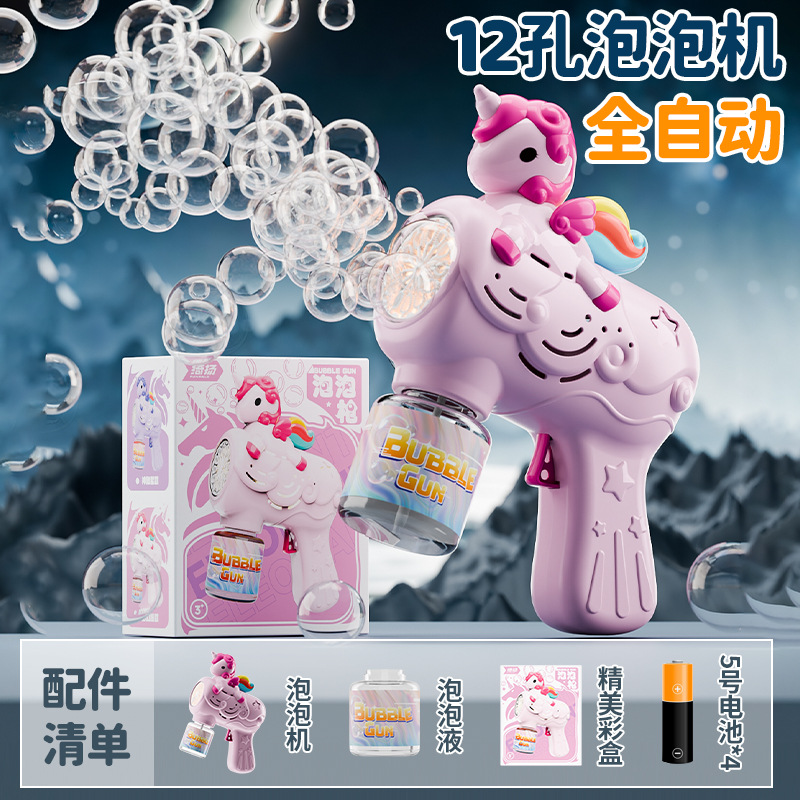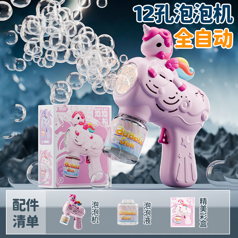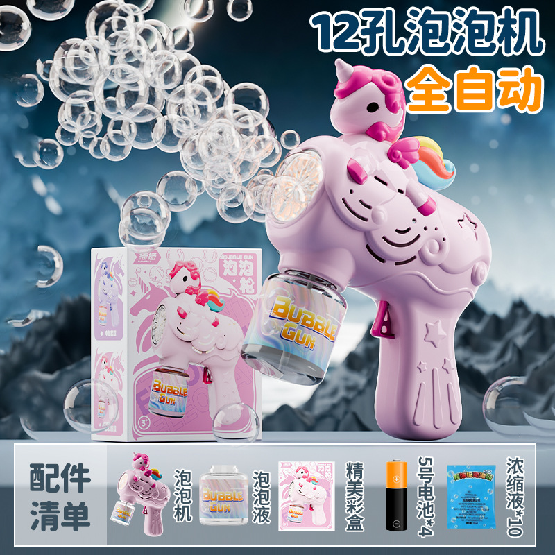 厂家批发全自动独角兽泡泡机手持泡泡枪独角兽小钢炮网红泡泡玩具