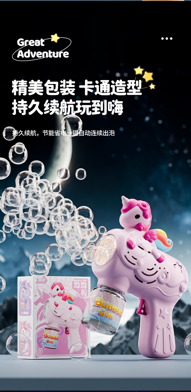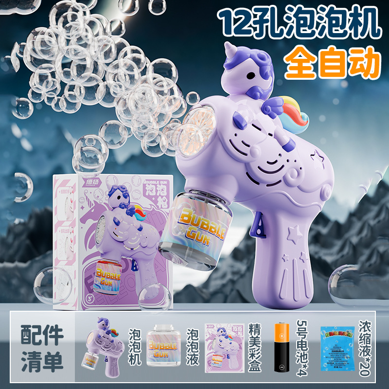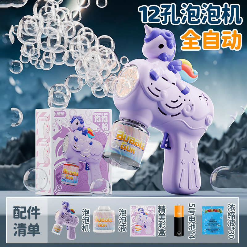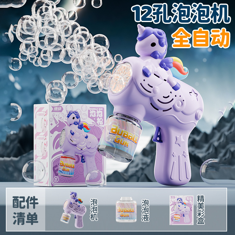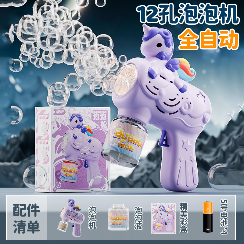 厂家批发全自动独角兽泡泡机手持泡泡枪独角兽小钢炮网红泡泡玩具