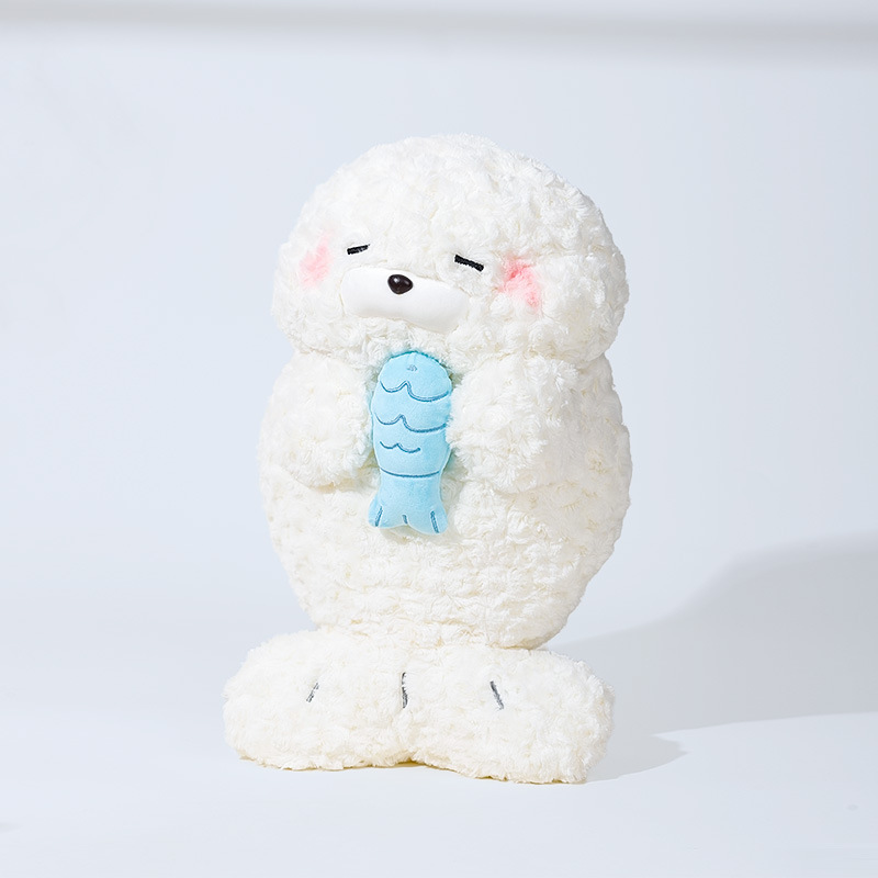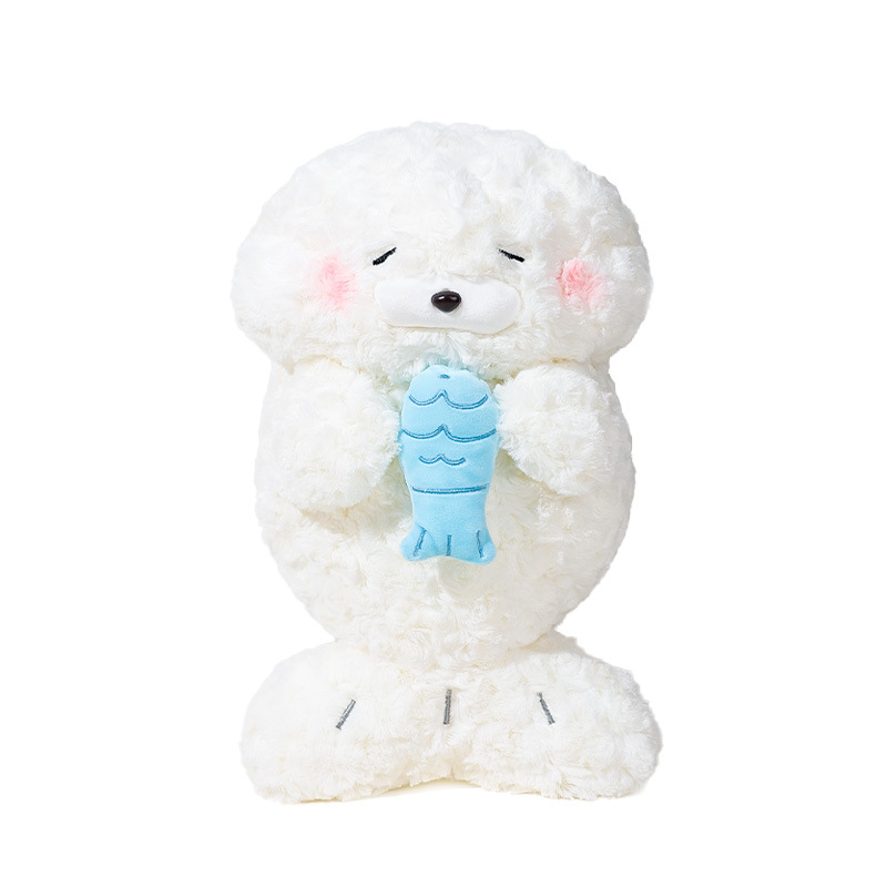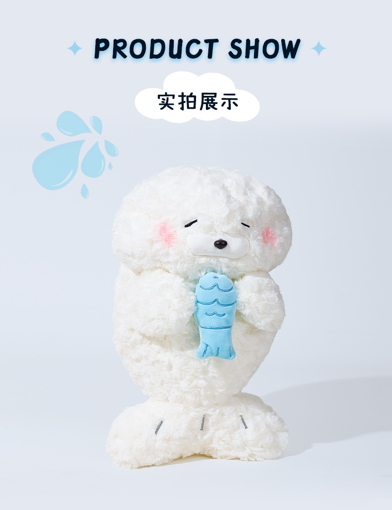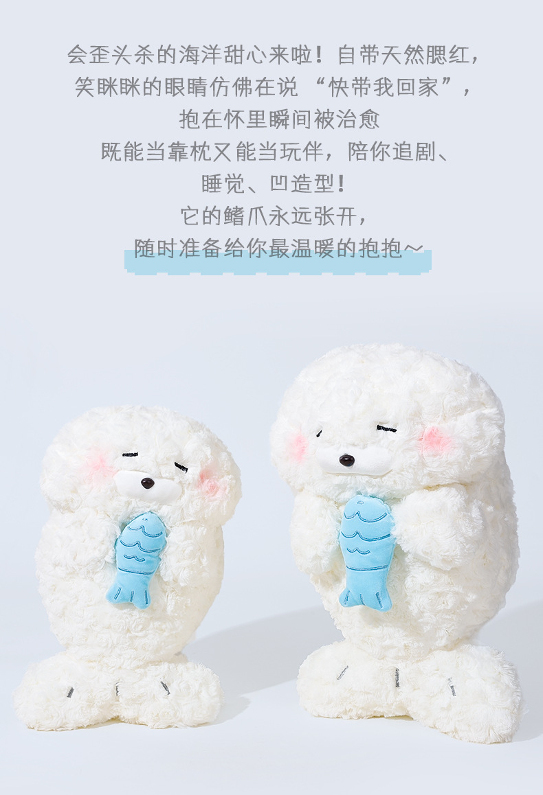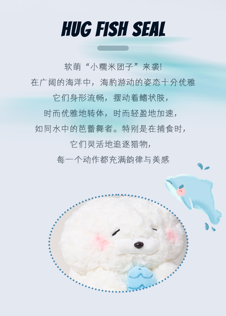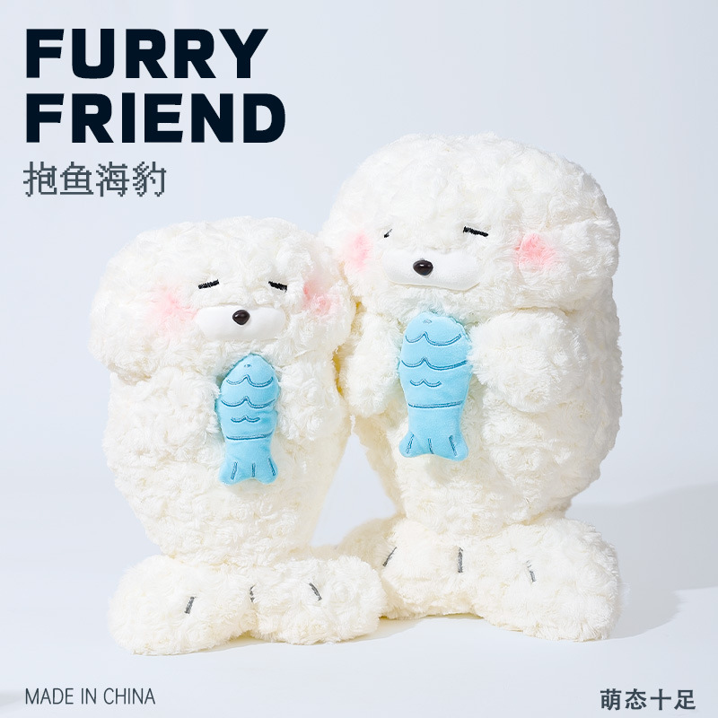 新款可爱呆萌抱鱼海豹玩偶创意毛绒玩具海豹公仔娃娃生日礼物批货