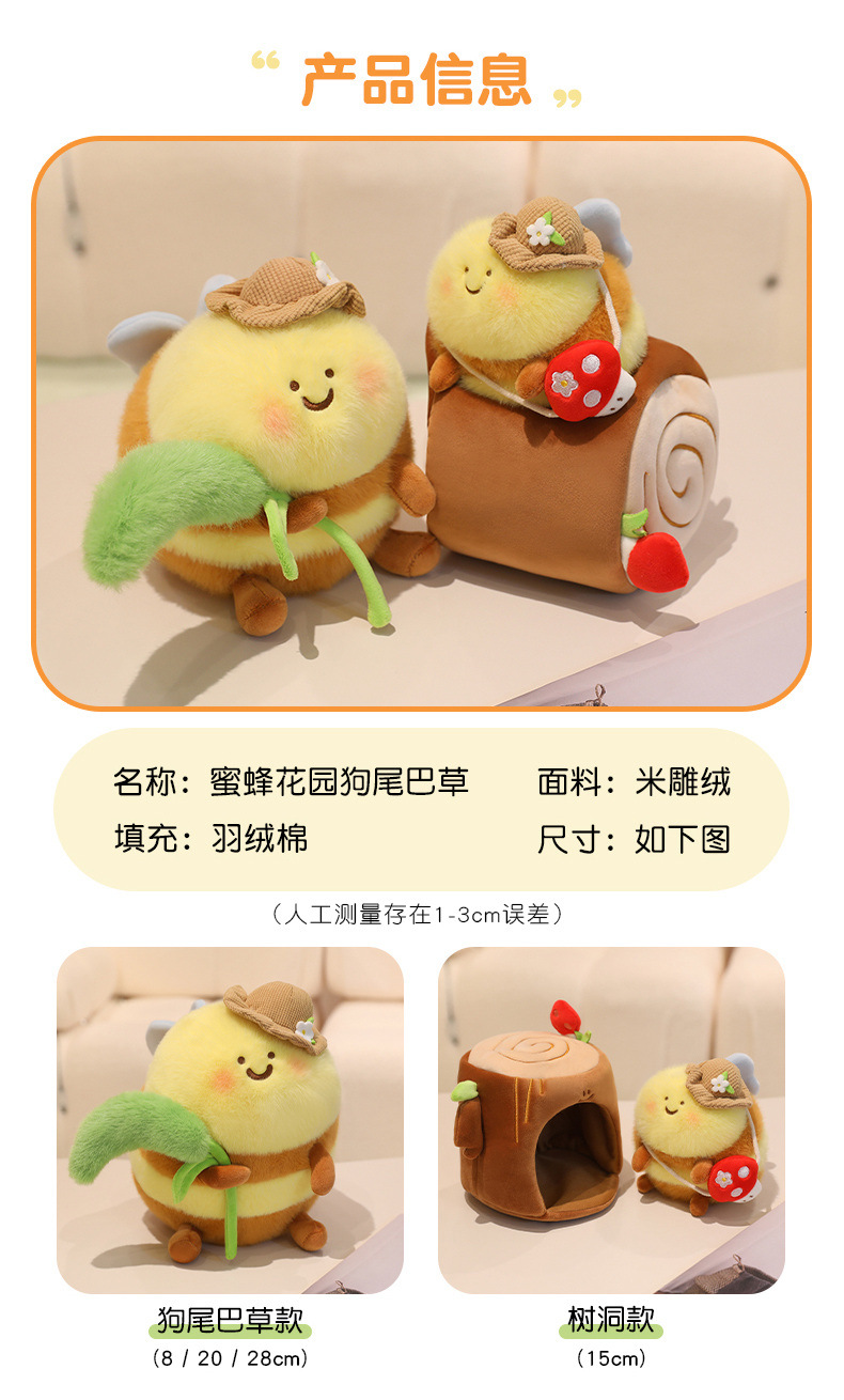 新款鼻涕熊蜜蜂花园狗尾巴草公仔毛绒玩具创意蜜蜂玩偶小礼品批发
