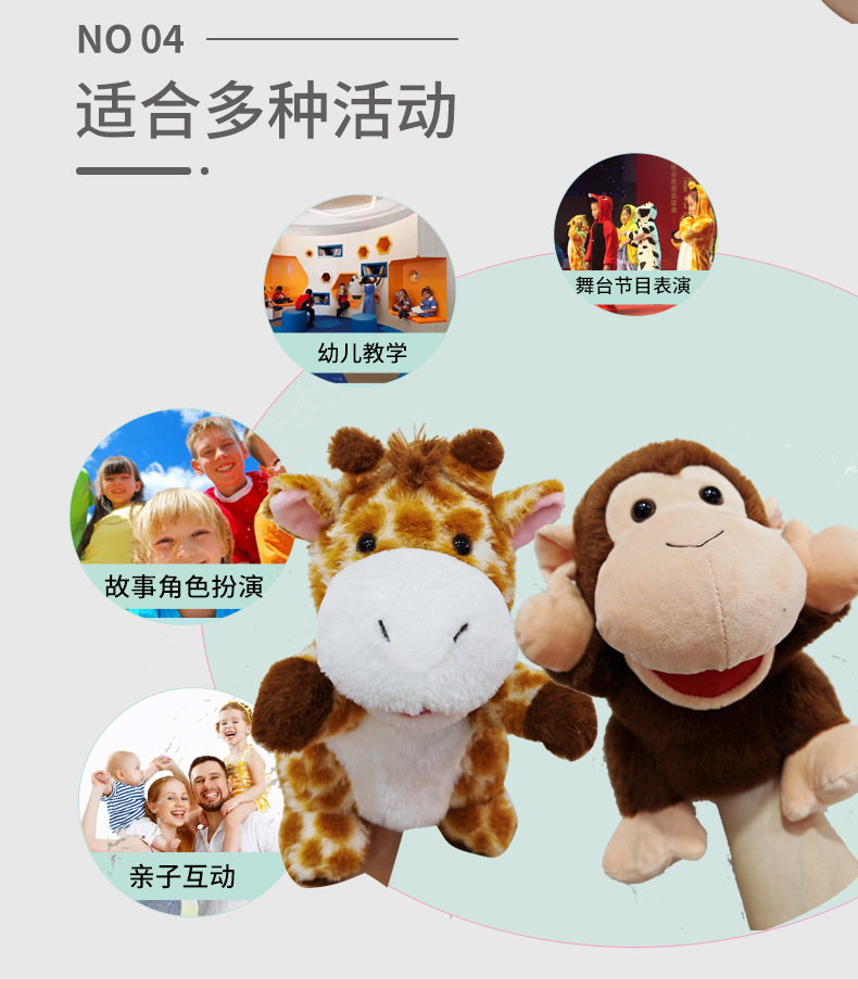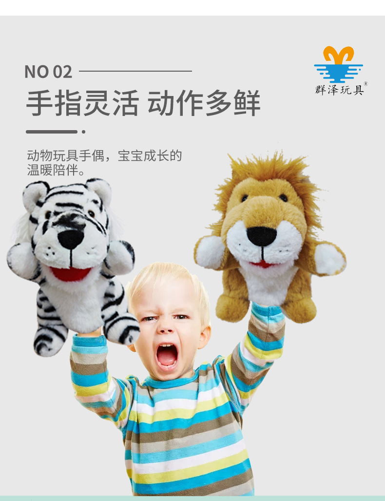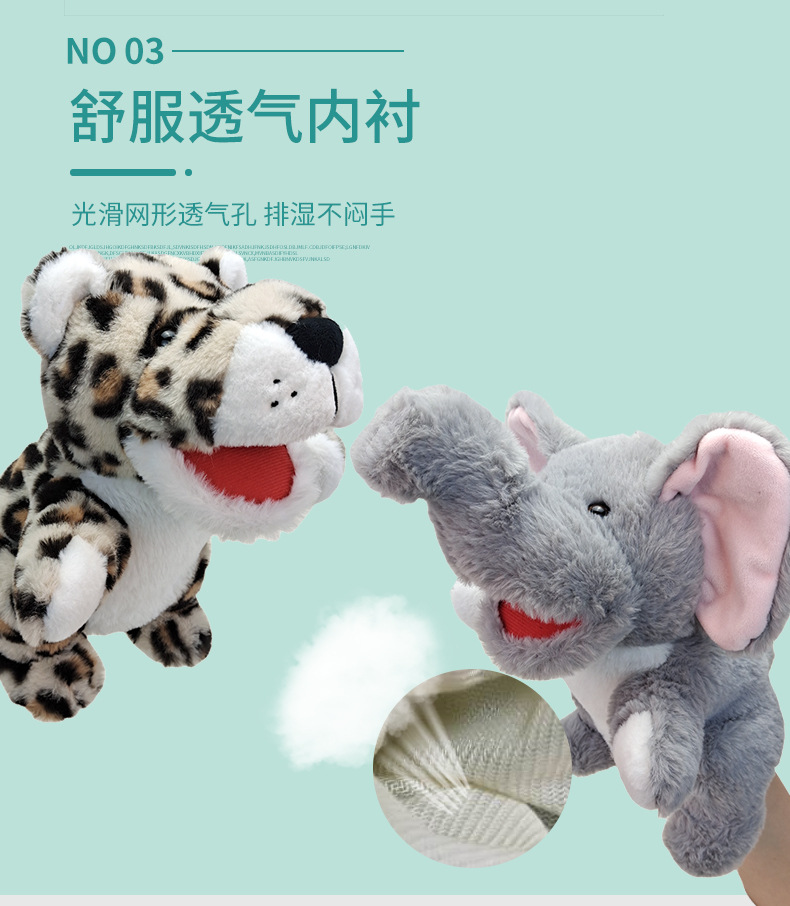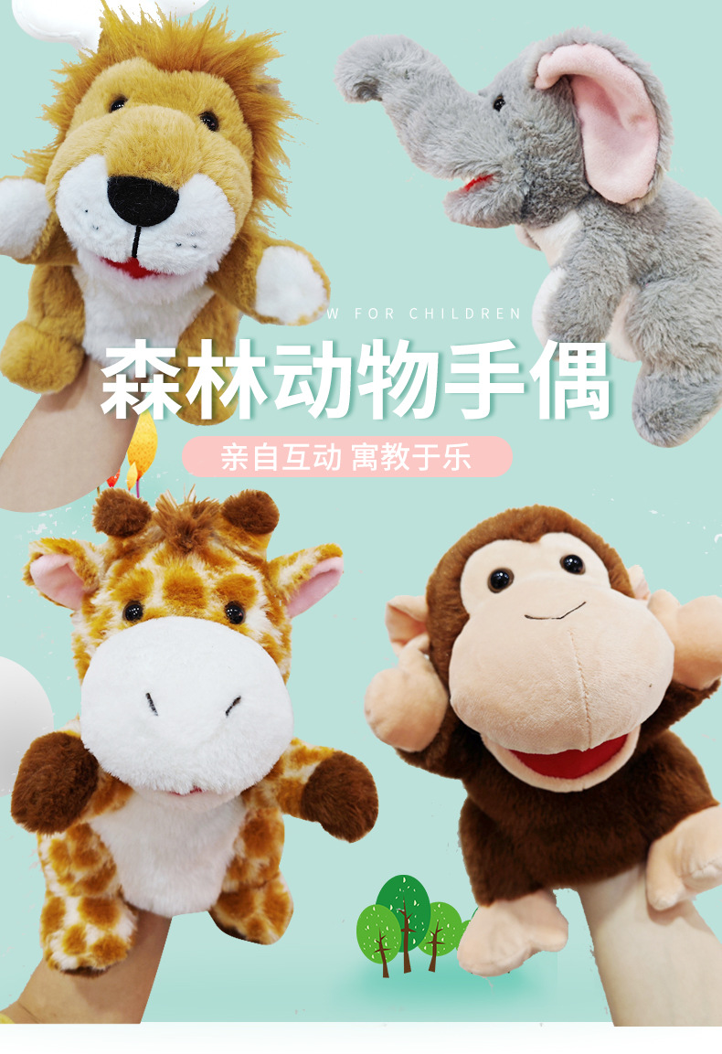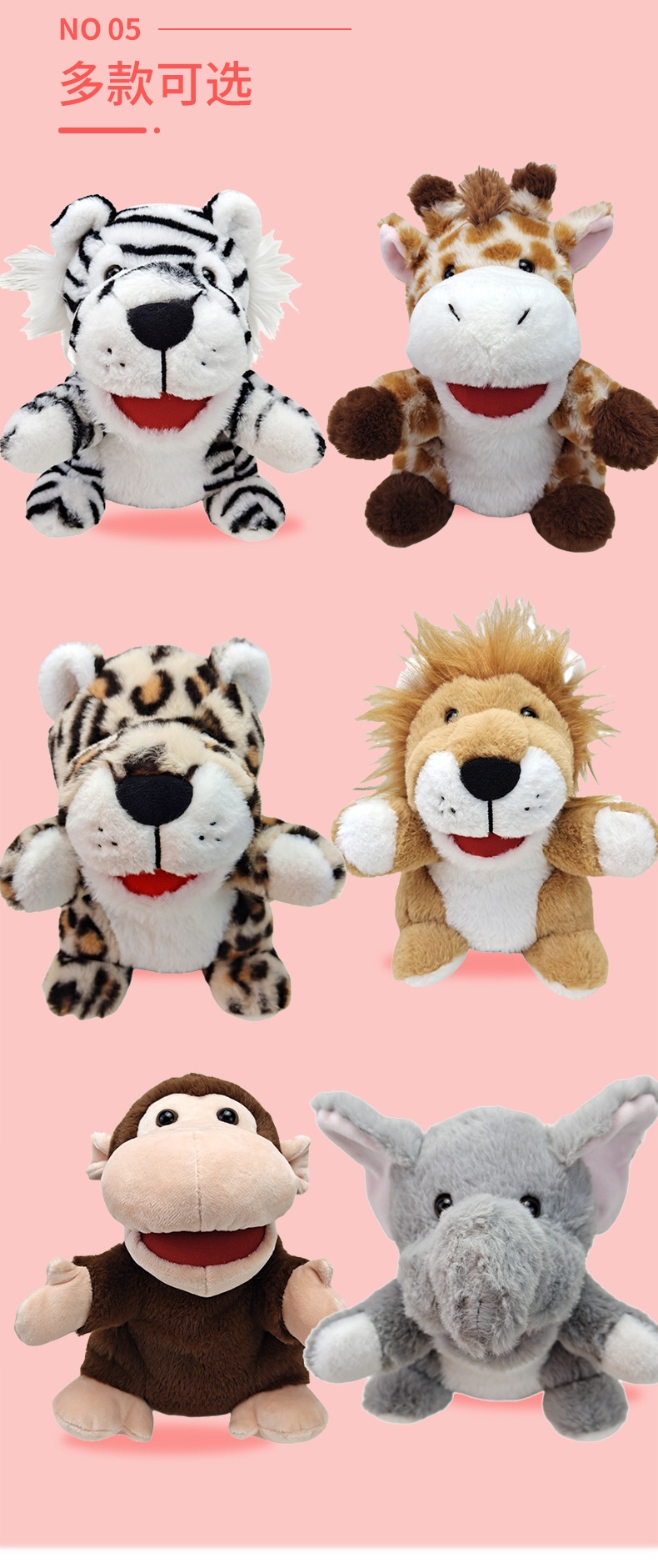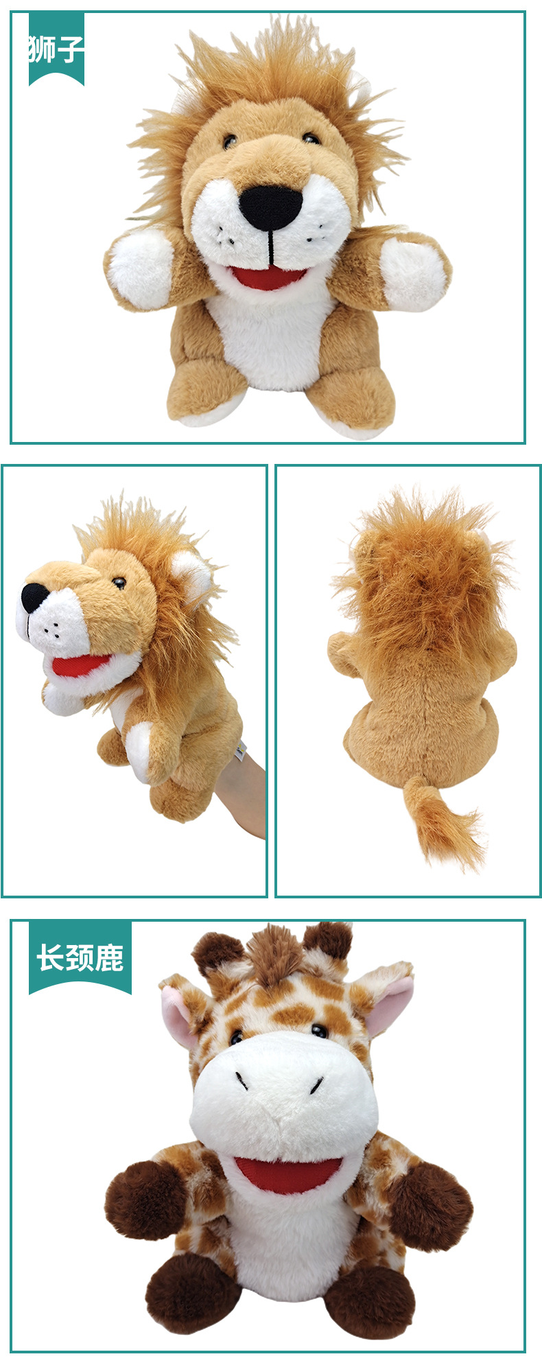 老虎动物手偶玩具亲子互动狮子手偶娃娃可张嘴巴能动兔子毛绒玩具