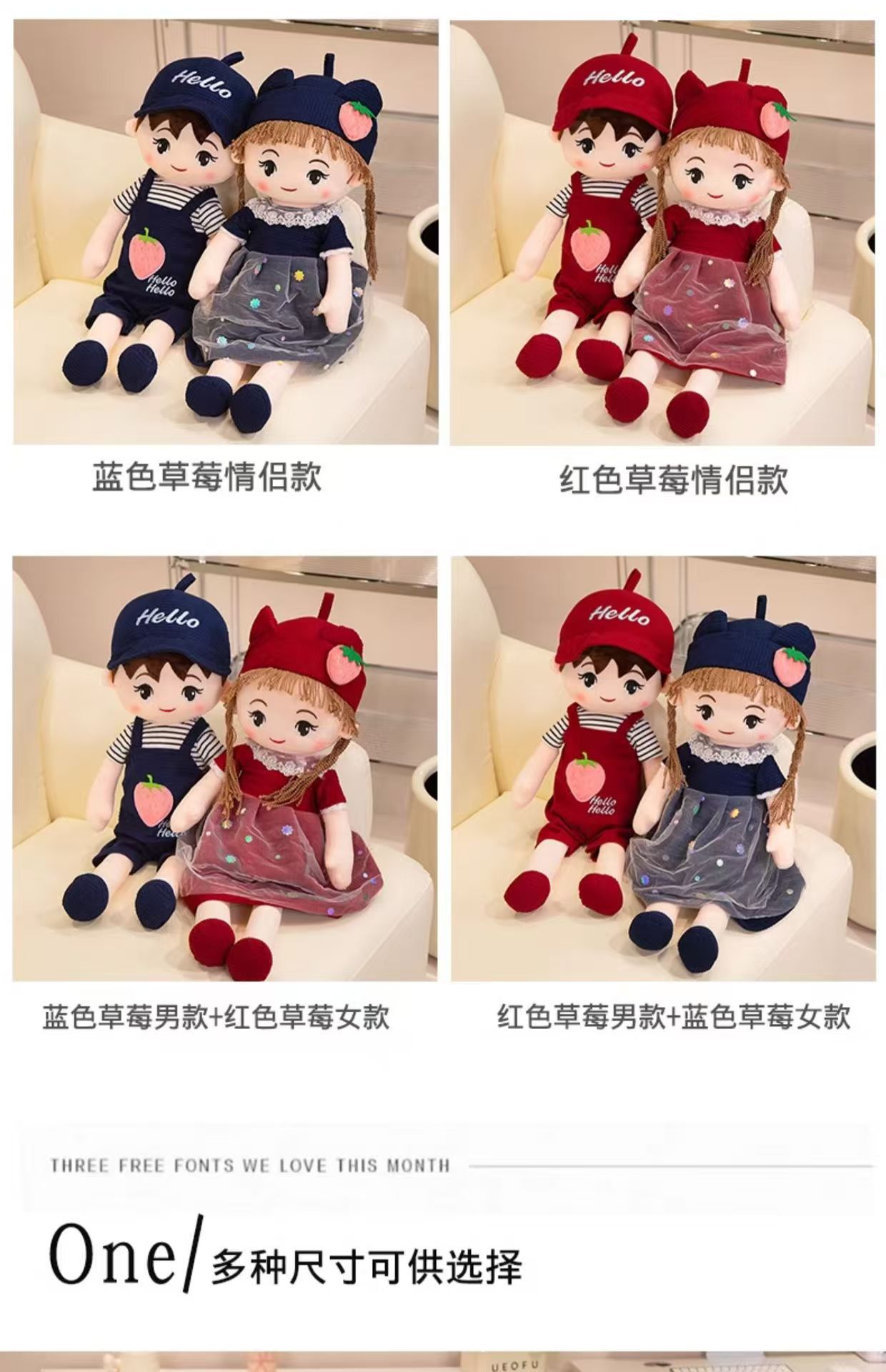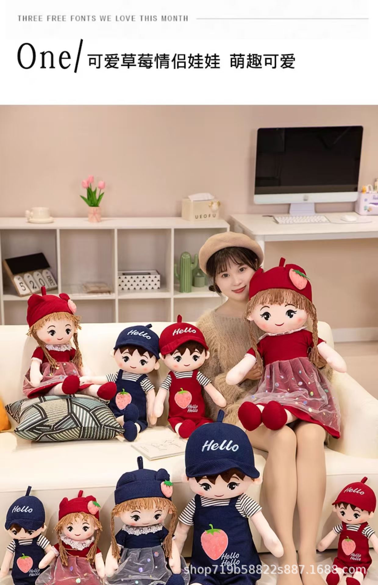高档草莓情侣一对布娃娃婚庆小玩偶压床娃娃布偶喜娃公仔结婚礼物