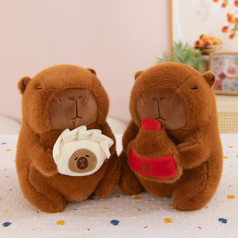 厂家批发新款八寸卡皮巴拉水豚公仔抓机娃娃毛绒玩具婚庆小玩偶
