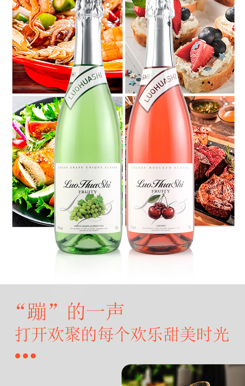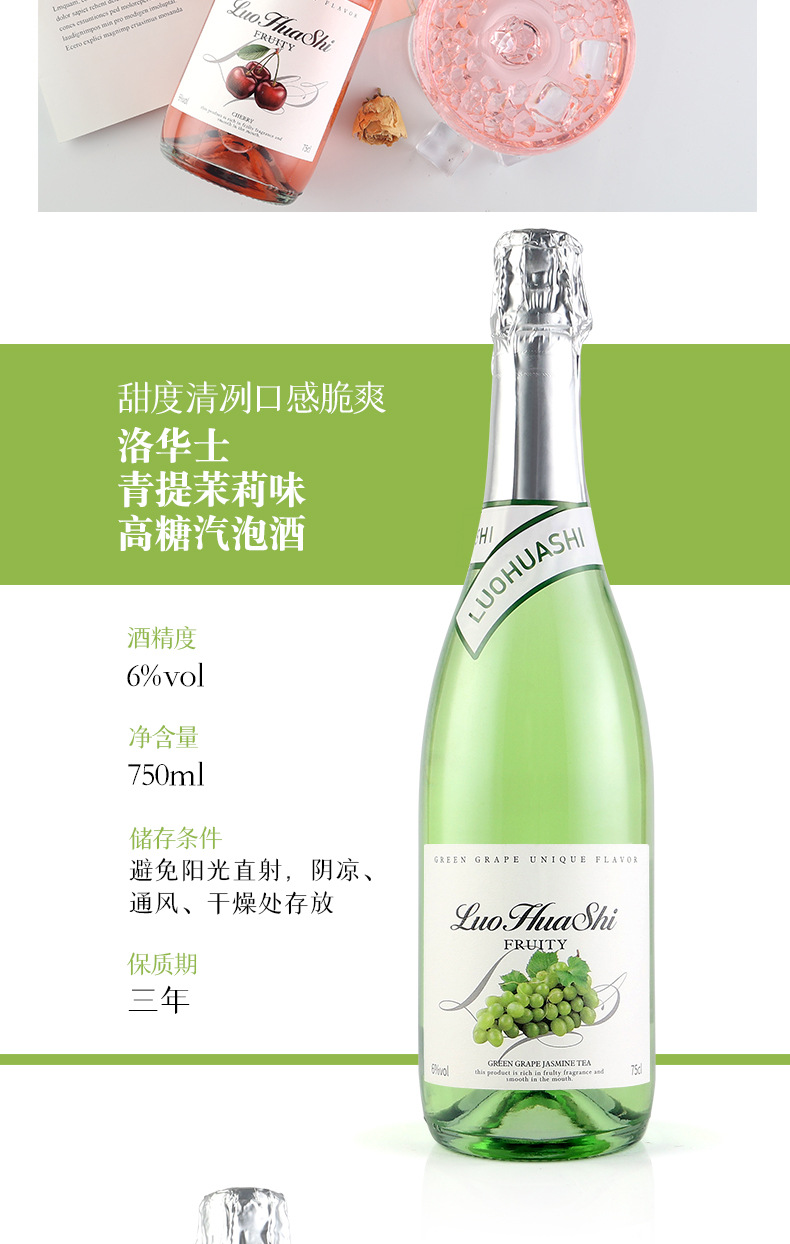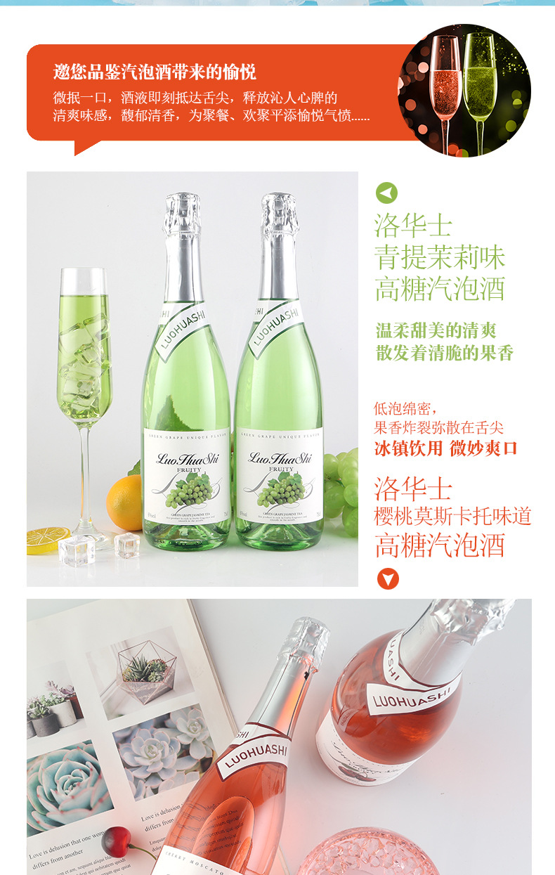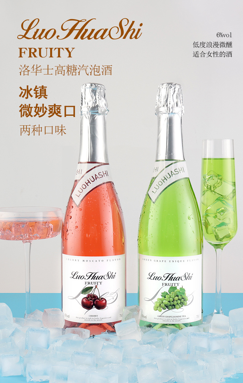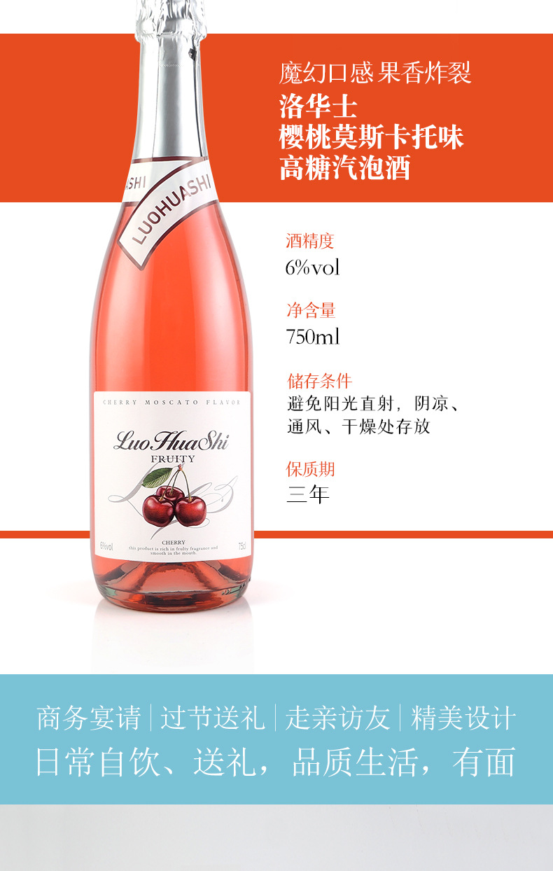 洛华士青提茉莉樱桃莫斯卡托女士微醺低度果味气泡酒果酒750ml