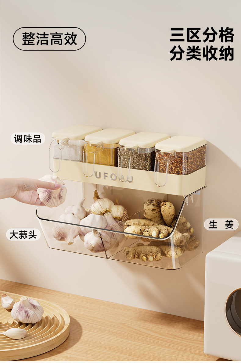 调料盒家用食品级壁挂免打孔调料罐厨房调料品收纳姜蒜收纳盒塑料