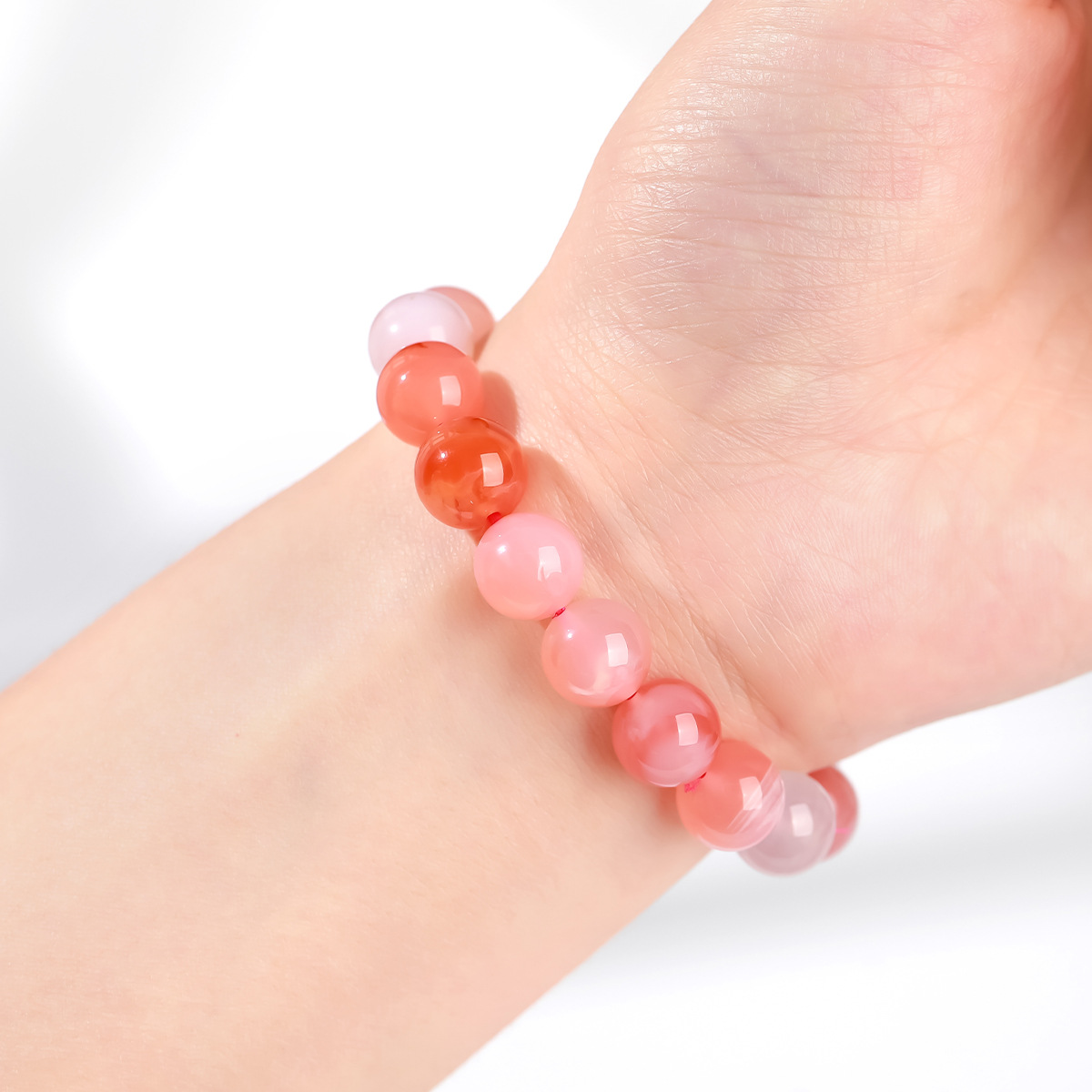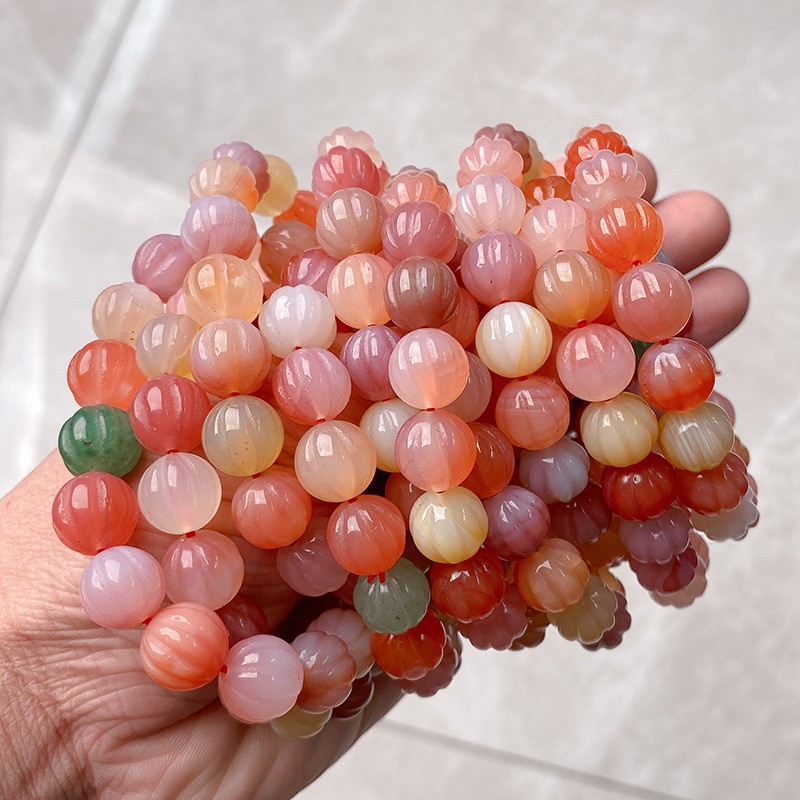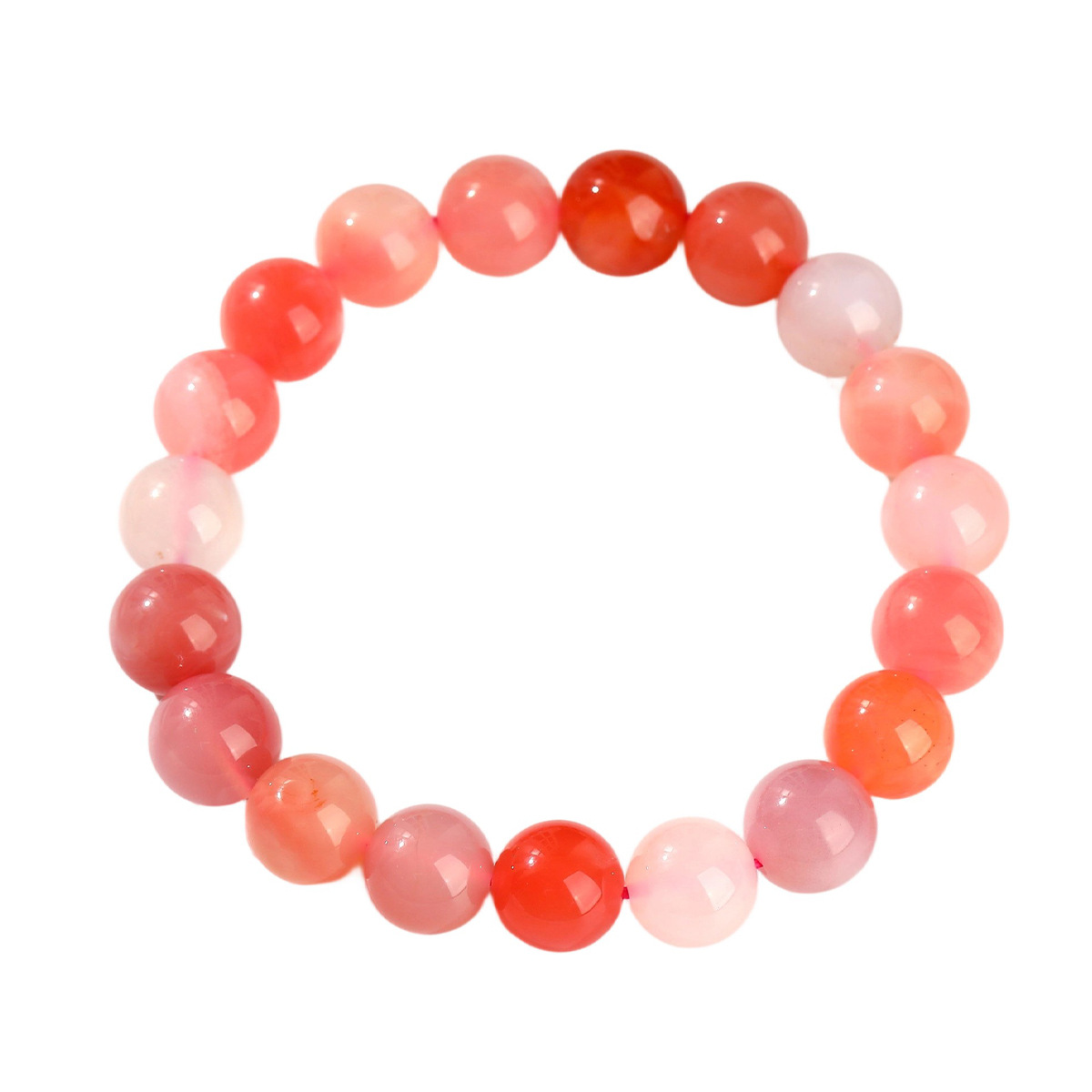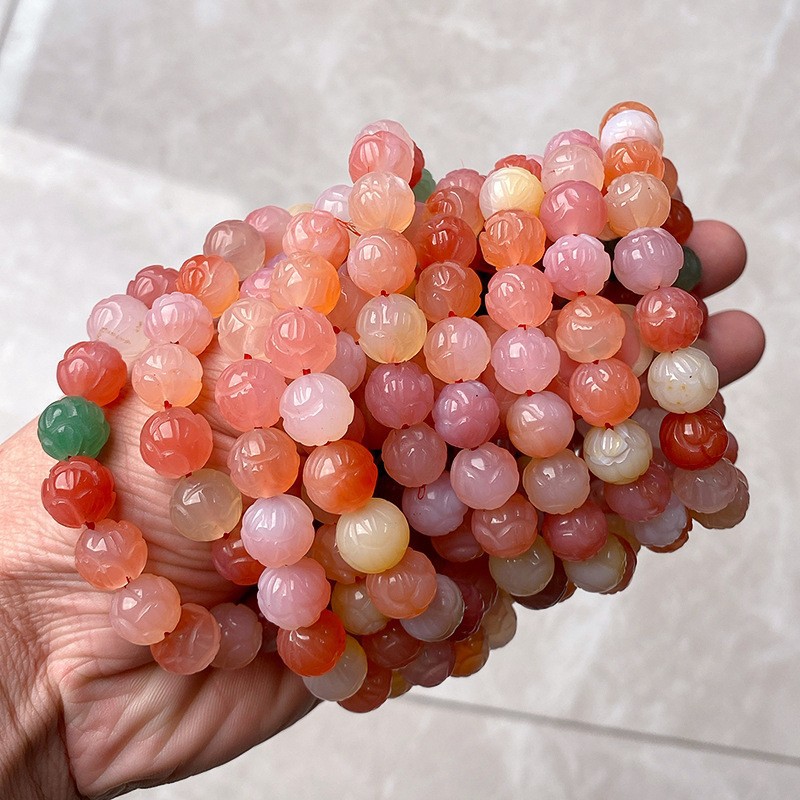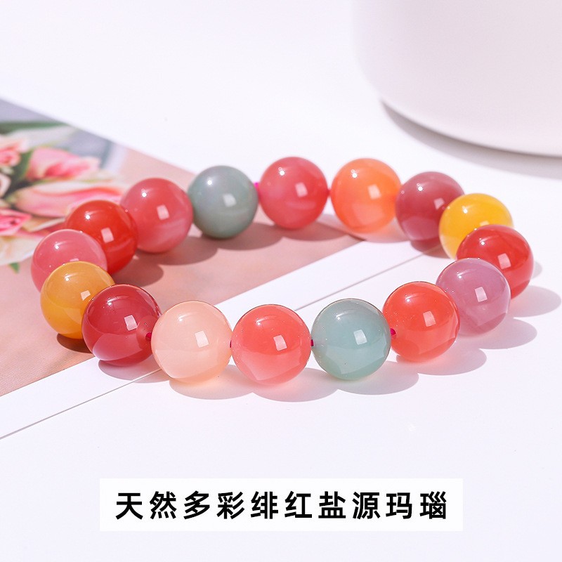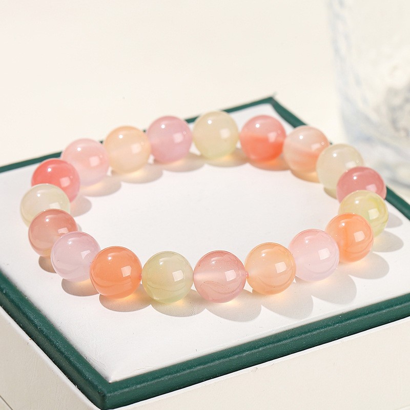 晶州珠宝3A盐源玛瑙手链蜜桃色多彩女生可爱单圈圆珠百搭手饰批发