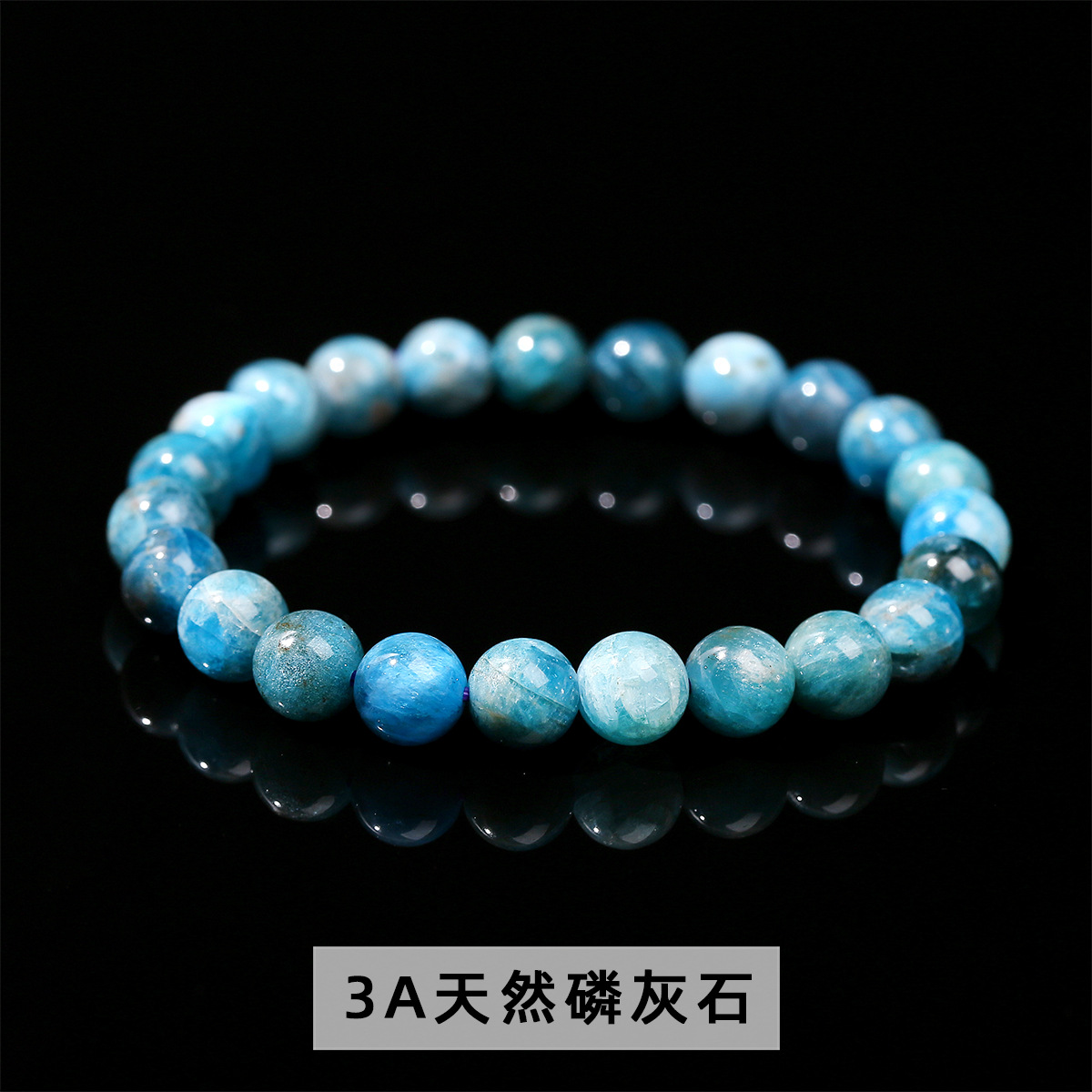 晶州珠宝 3A天然磷灰石手链欧美跨境时尚男女款单圈圆珠手饰批发