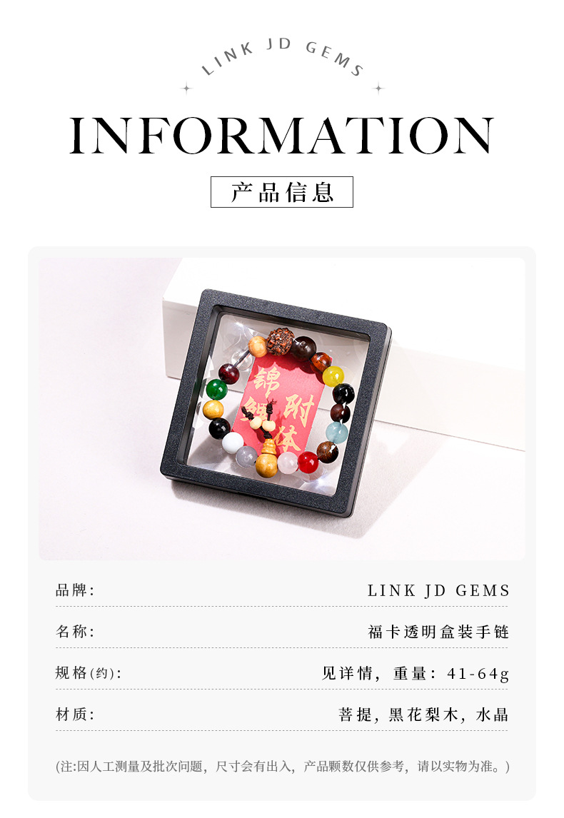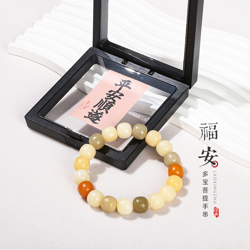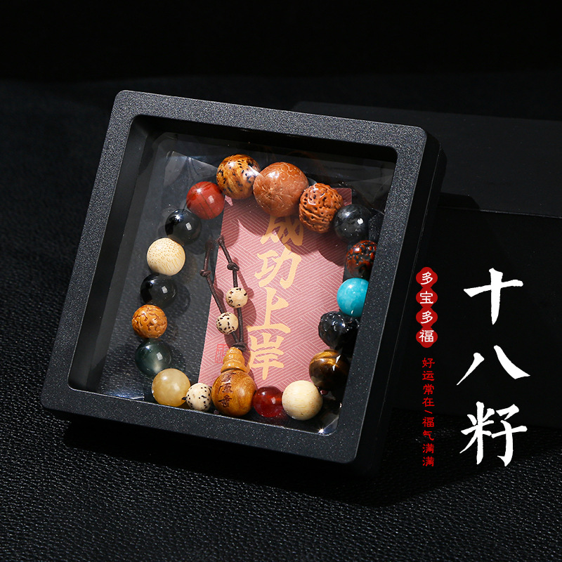 晶州珠宝 菩提老型珠十八籽手链福卡透明盒装新中式礼物手饰批发