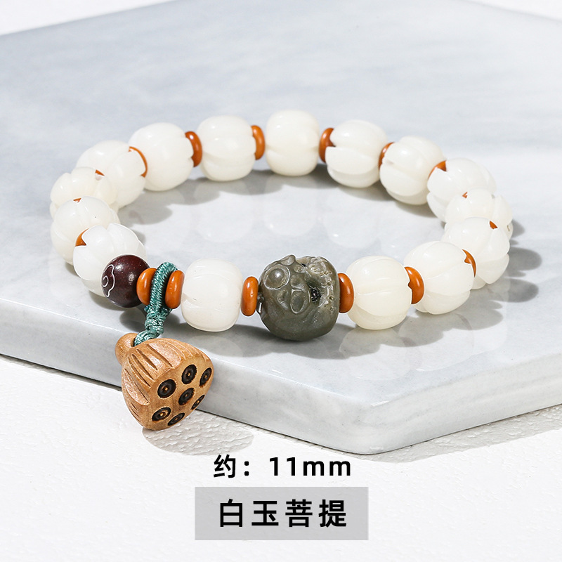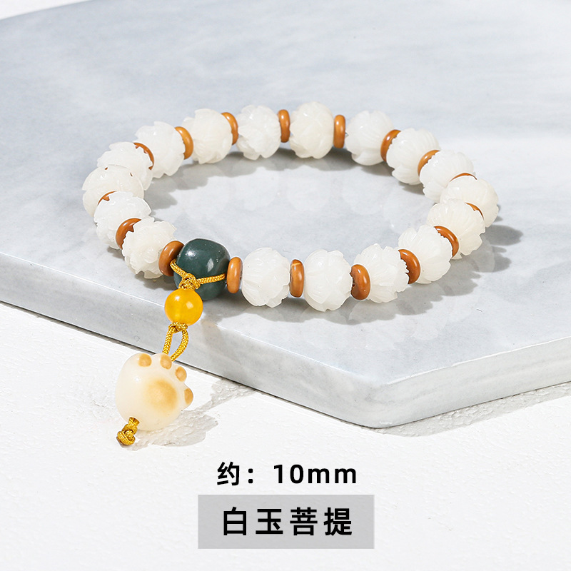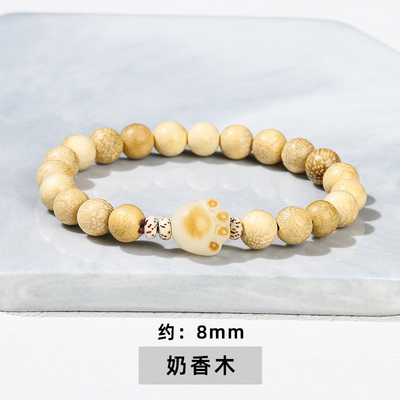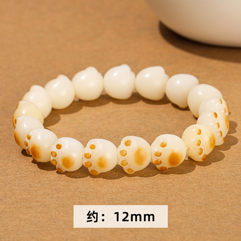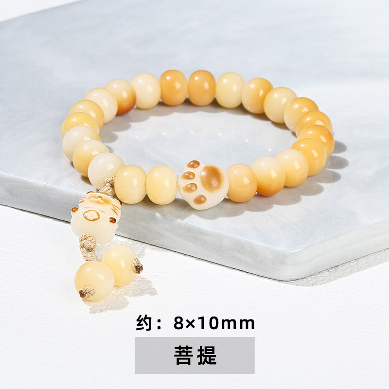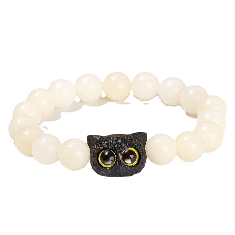 晶州珠宝文艺可爱风女生菩提子手串批发白玉菩提炭烧猫爪猫咪手链