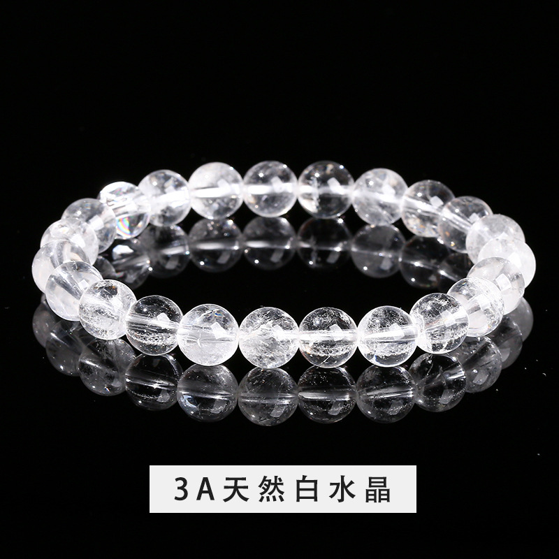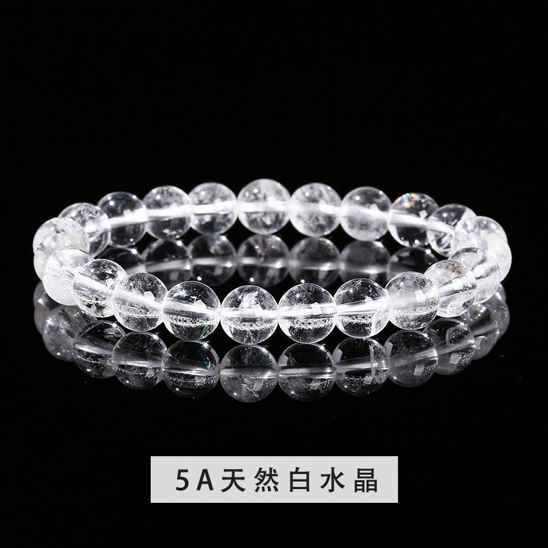 晶州珠宝 5A天然白水晶手链时尚简约百搭男女款圆珠礼物手串批发