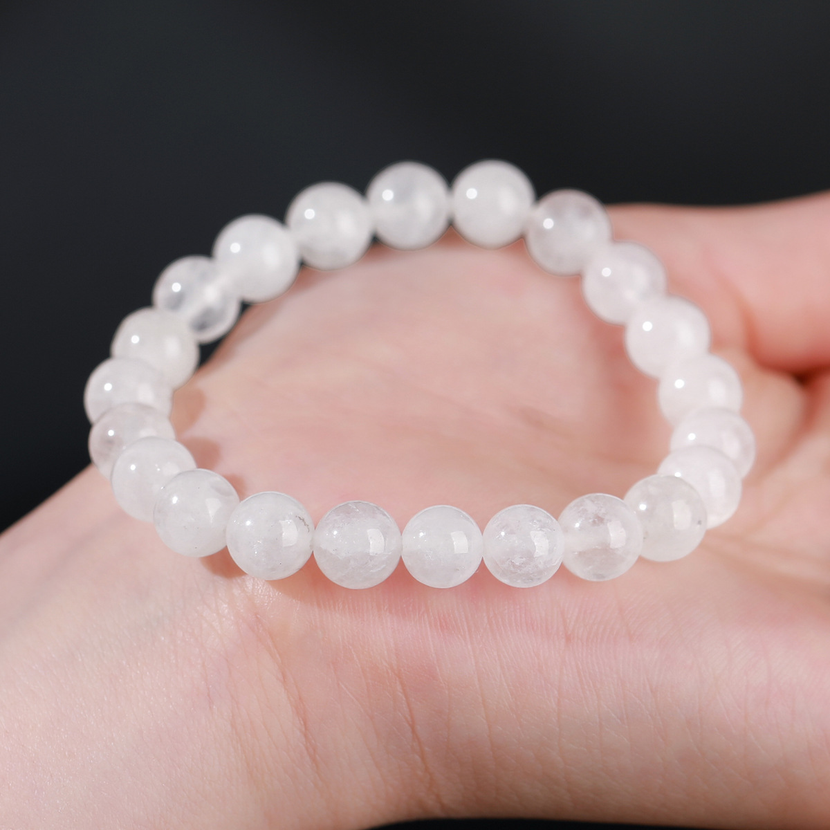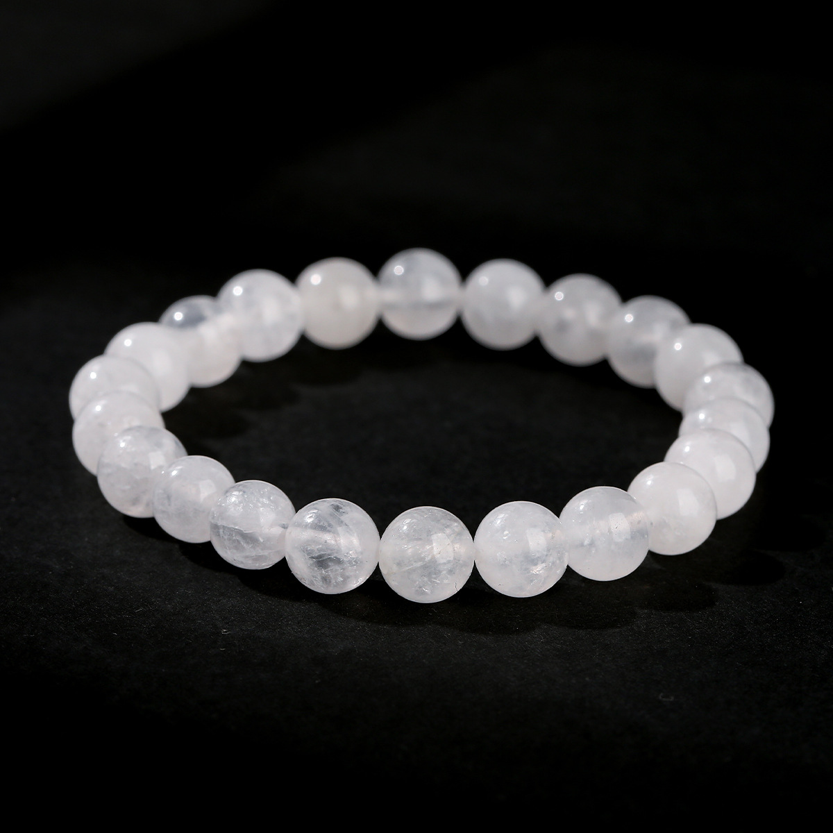 晶州珠宝 天然高品质白玉手链原矿打磨女生复古单圈圆珠手饰批发
