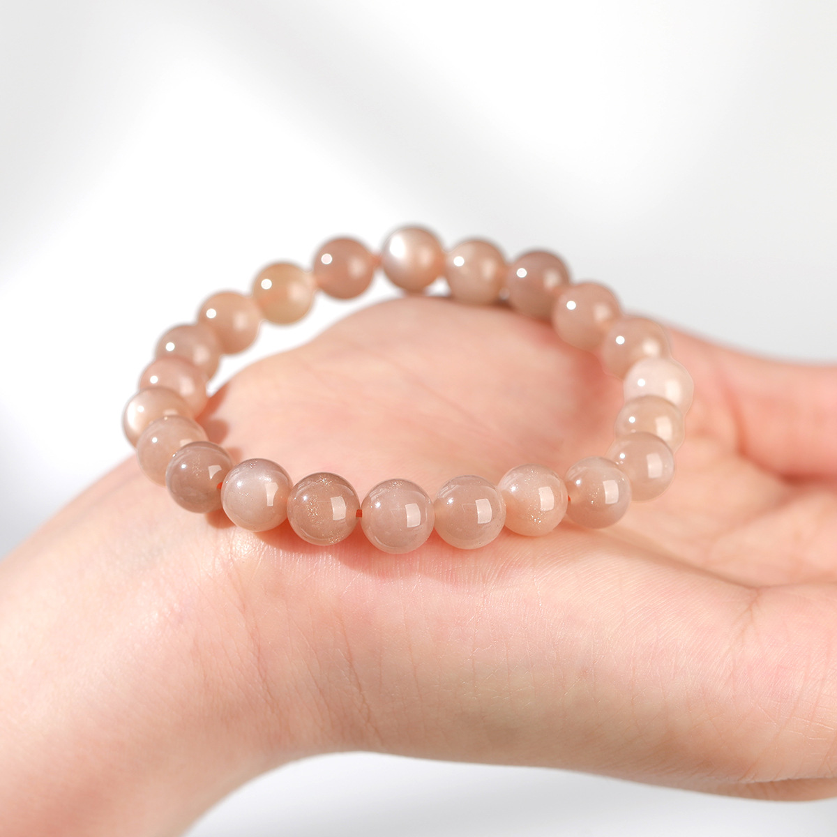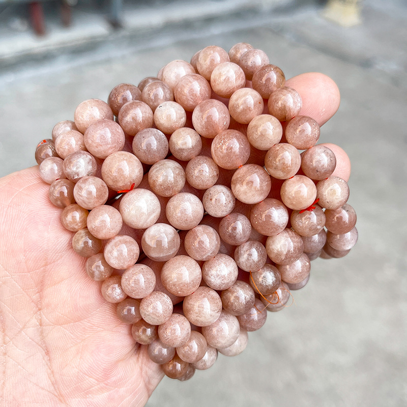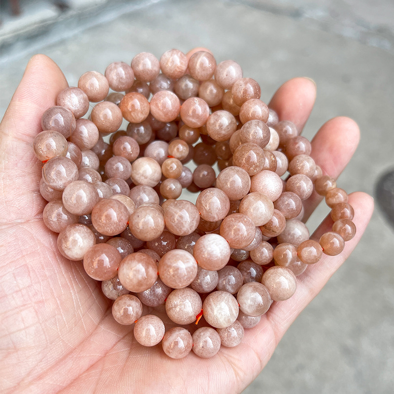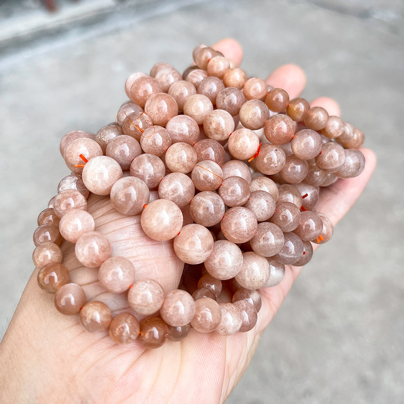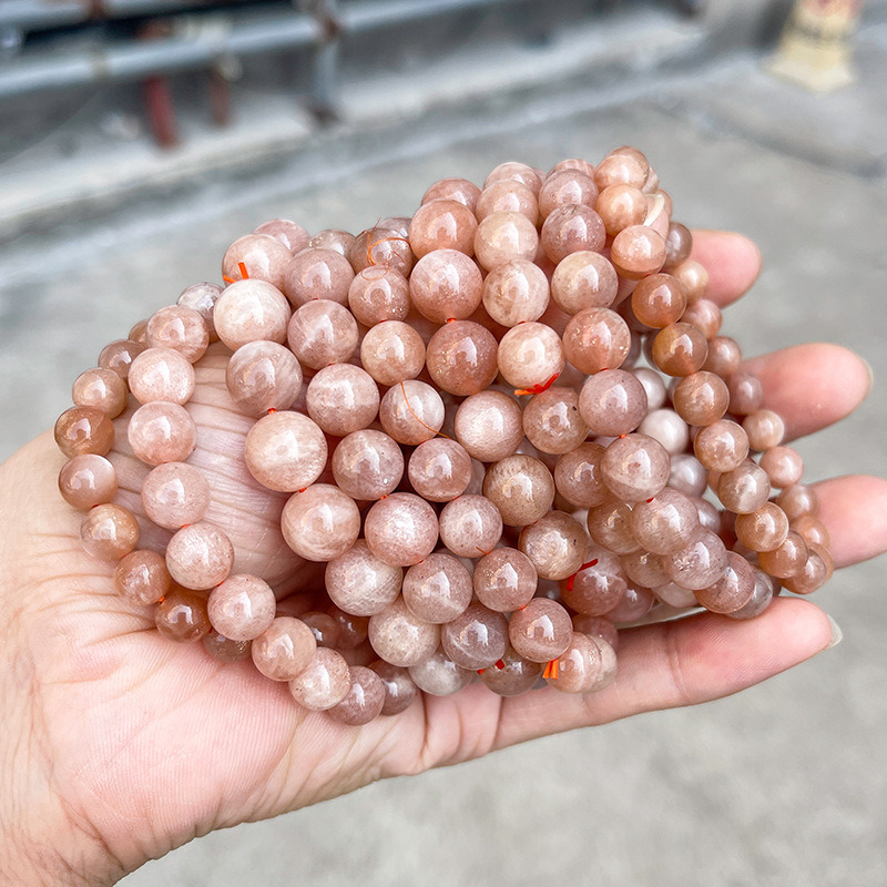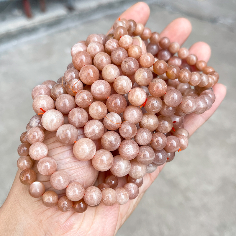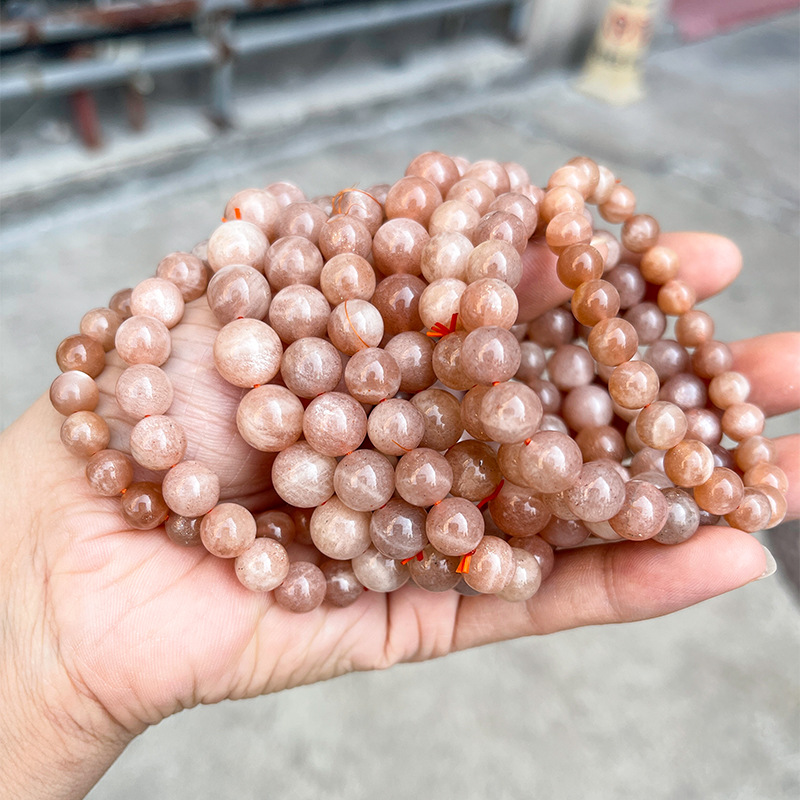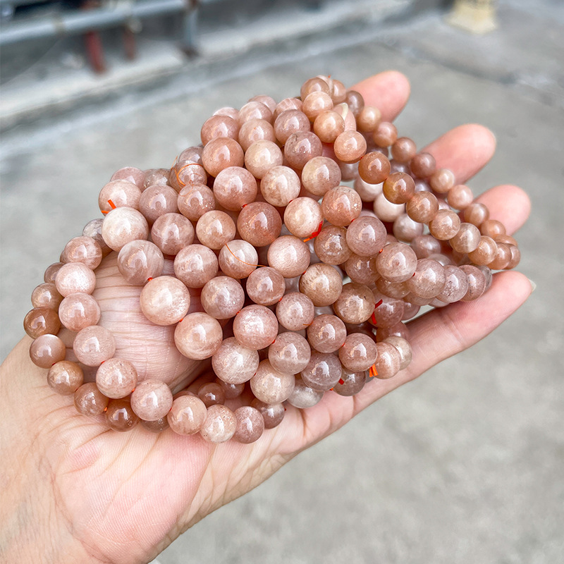 晶州珠宝 5A天然橙月光石手链人鱼姬细闪时尚高级感圆珠手串批发