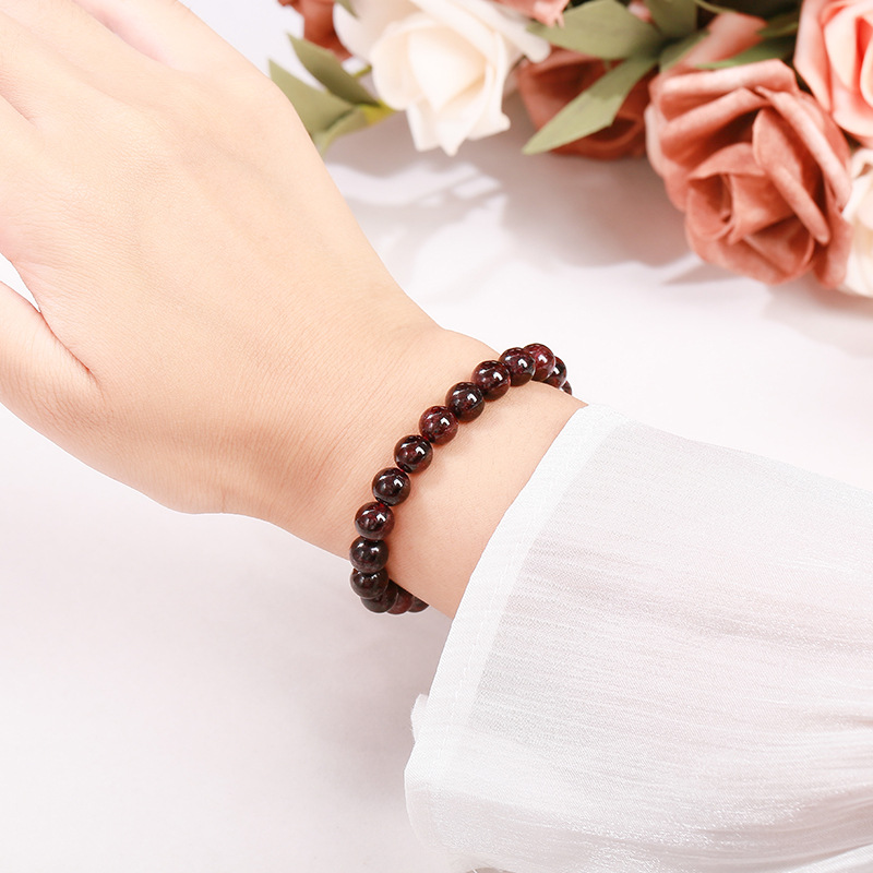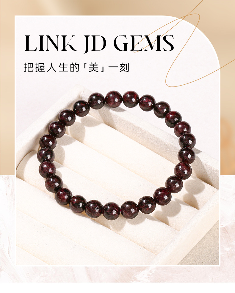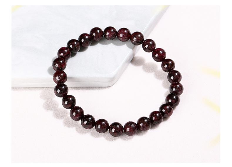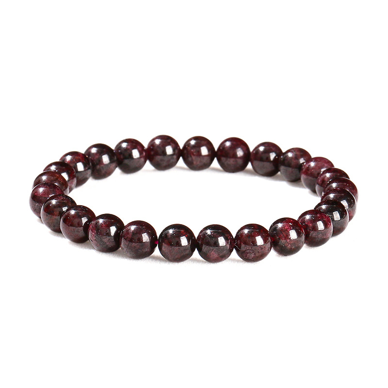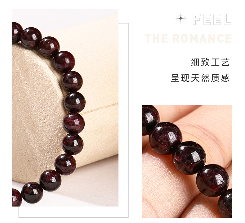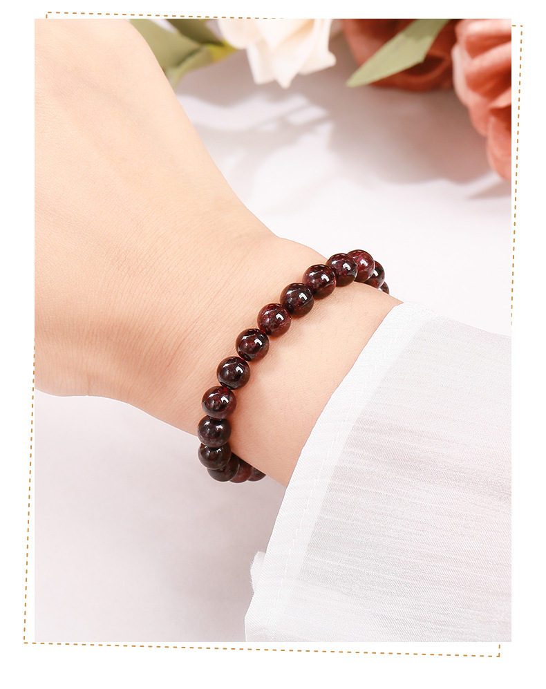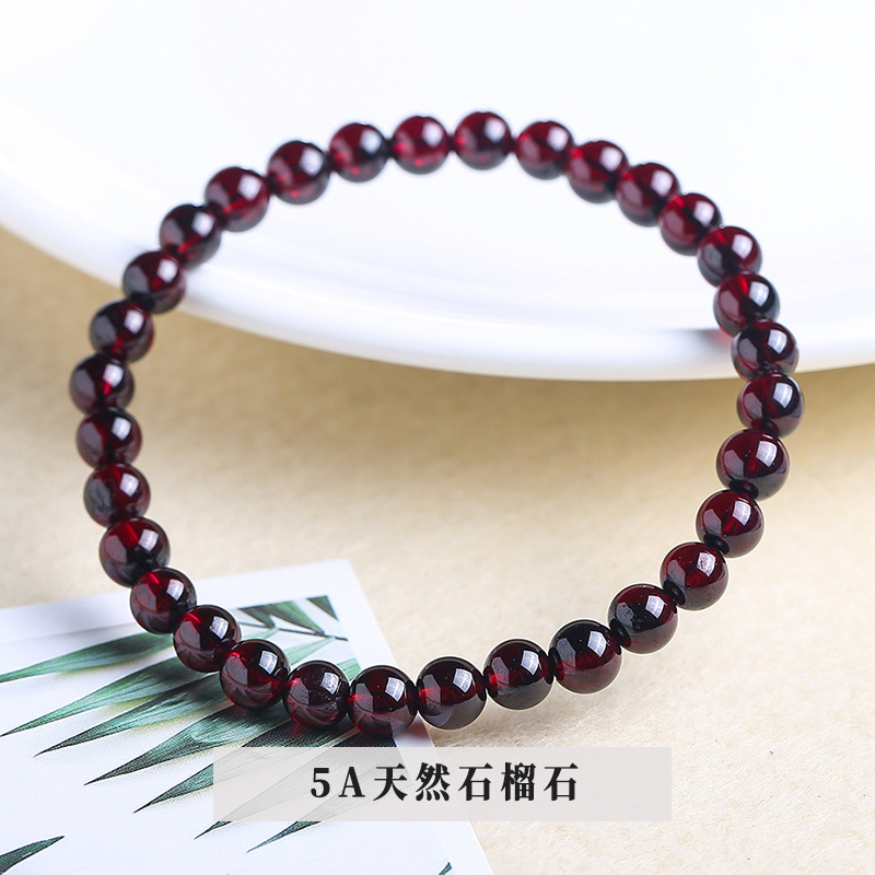 晶州珠宝 1A天然石榴石手链 时尚简约闺蜜礼物水晶圆珠手串批发