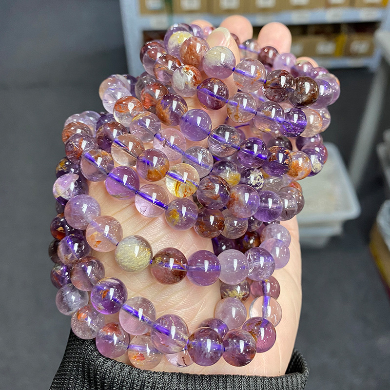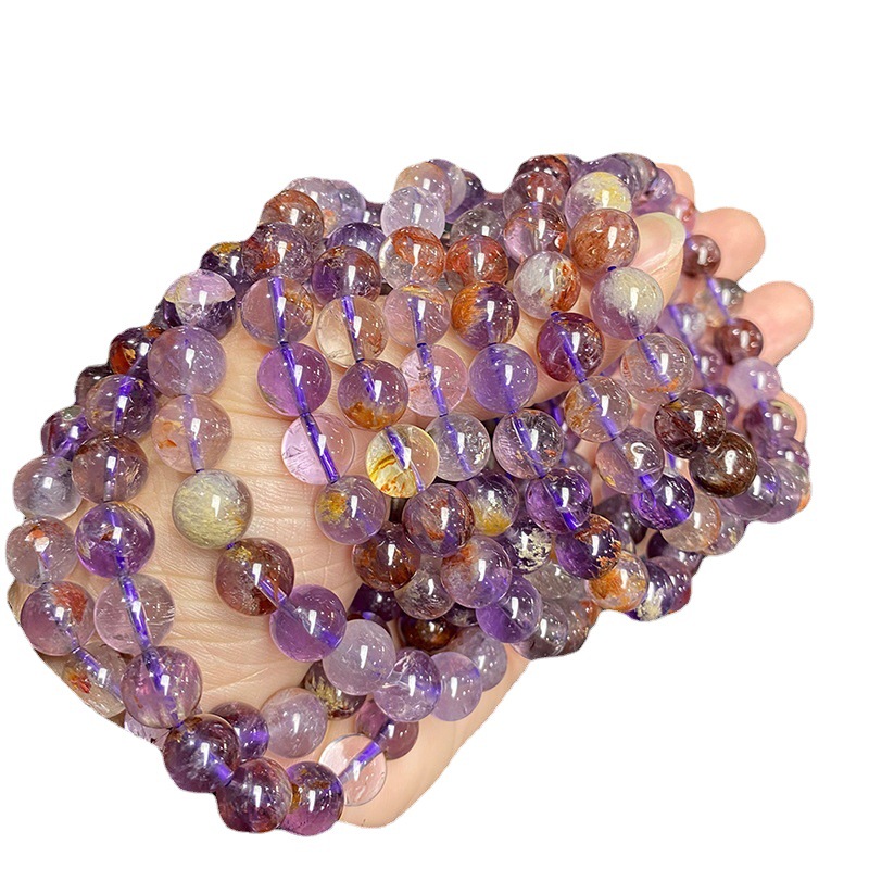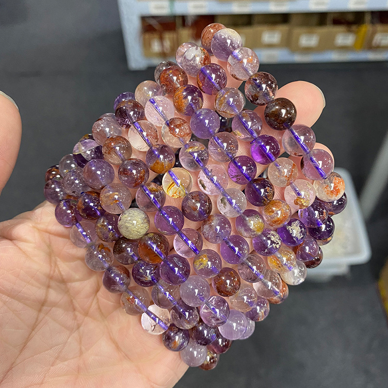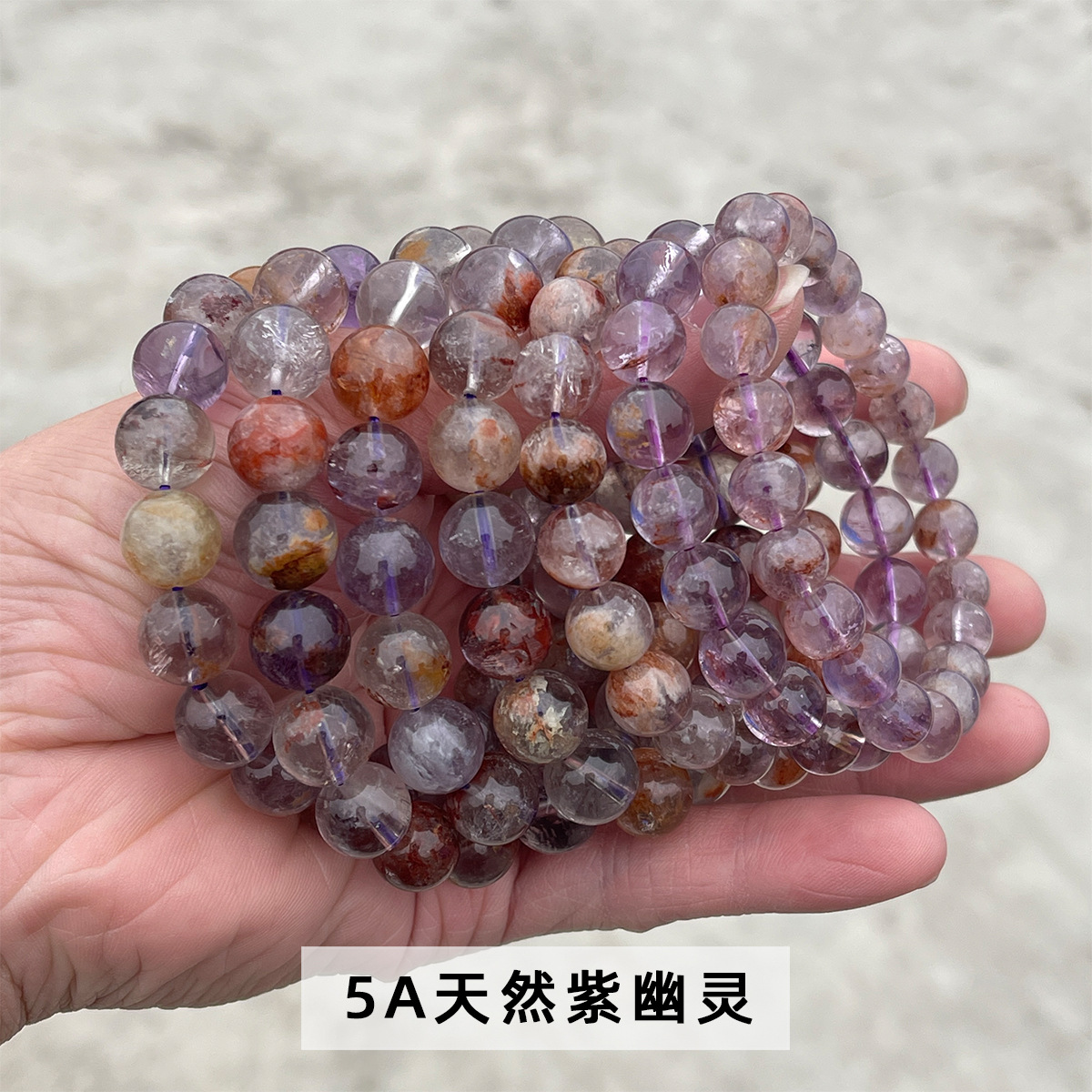 晶州珠宝 5A天然紫幽灵手链紫钛晶异象女生个性百搭水晶手饰批发