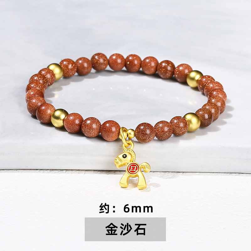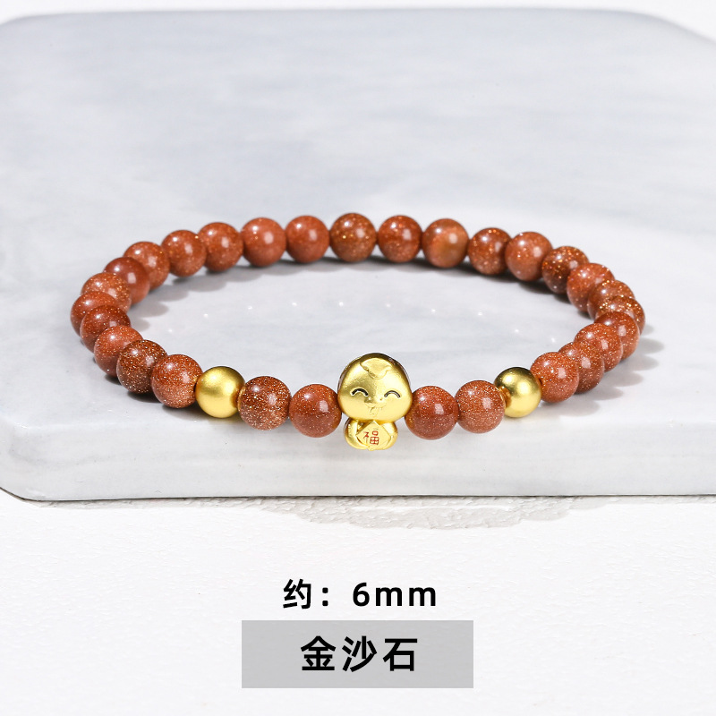 晶州珠宝金沙石招米猫手链女生可爱猫咪夏季百搭单圈圆珠手饰批发