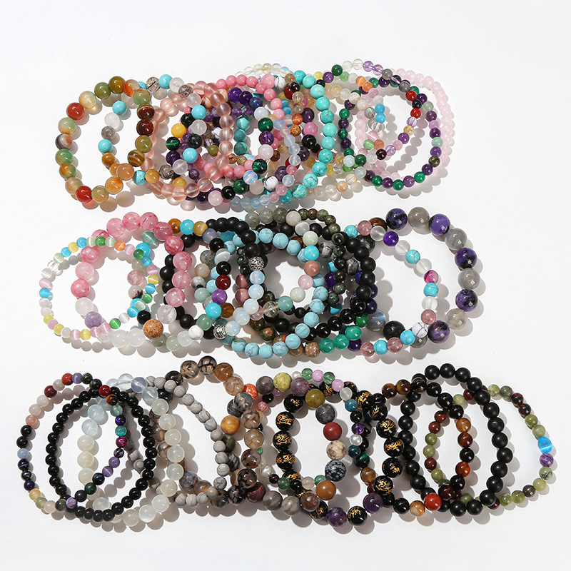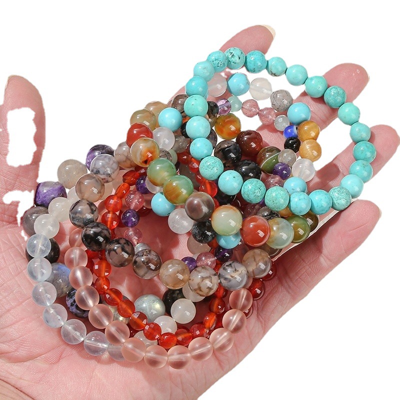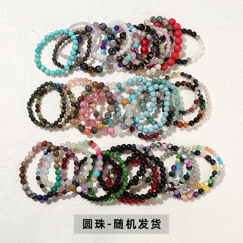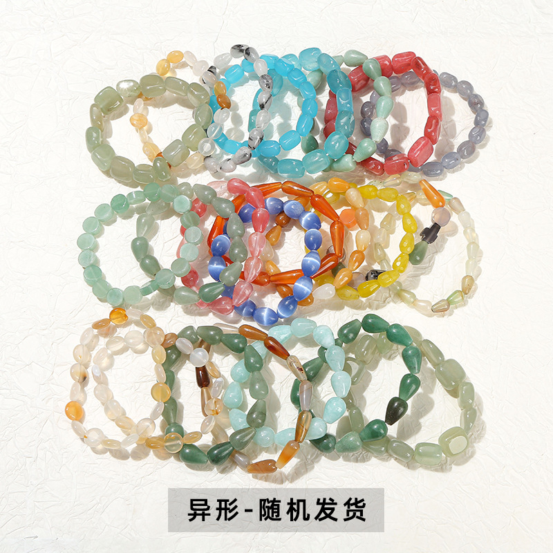 晶州珠宝天然石时尚个性潮流单圈手饰水晶玛瑙圆珠异形珠手链批发