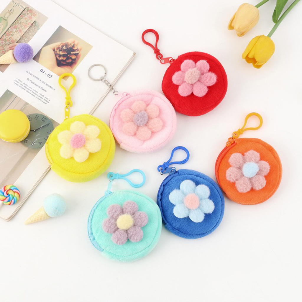 可爱花朵零钱包迷你圆形收纳包零钱包耳机包节日礼品收纳包包批发