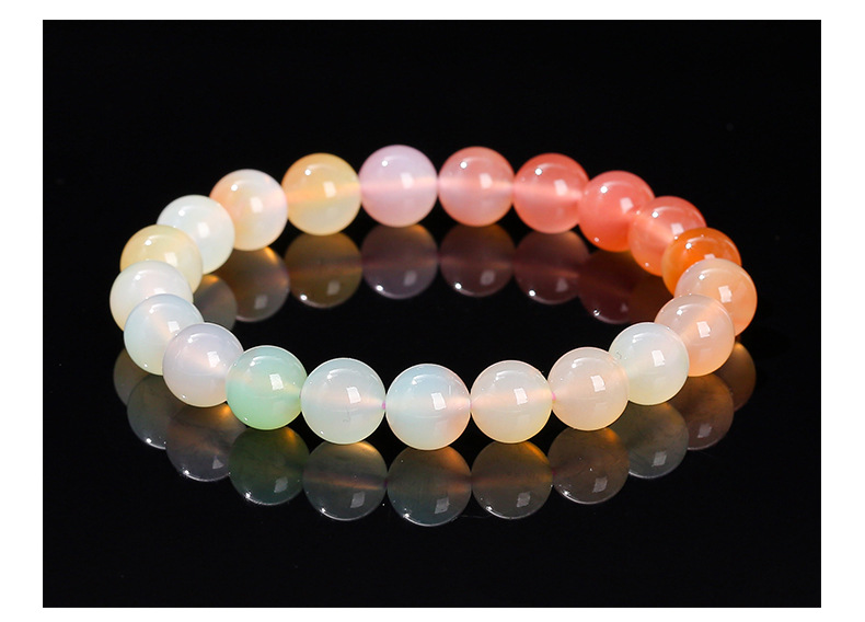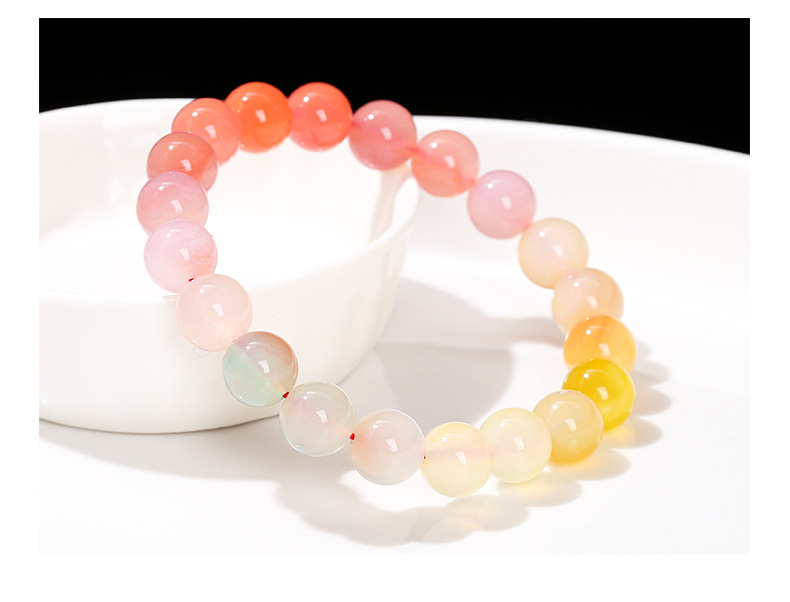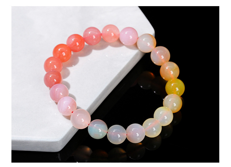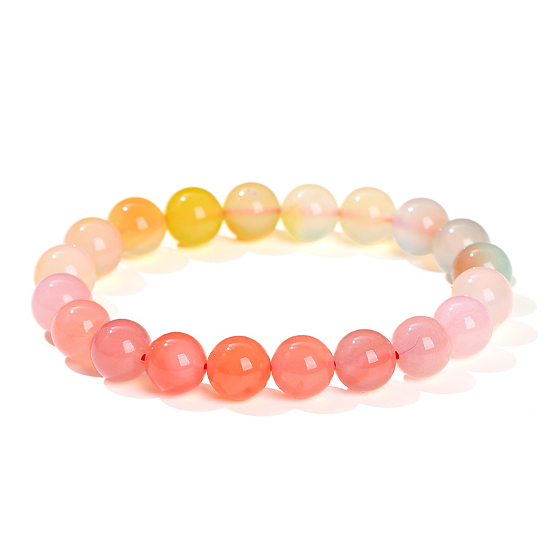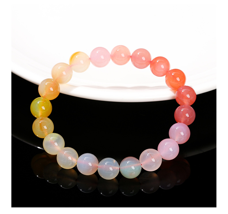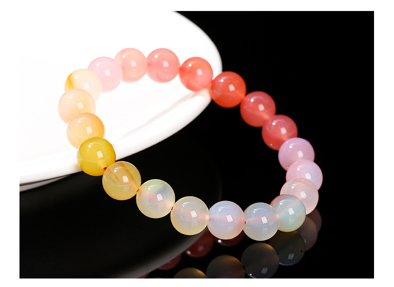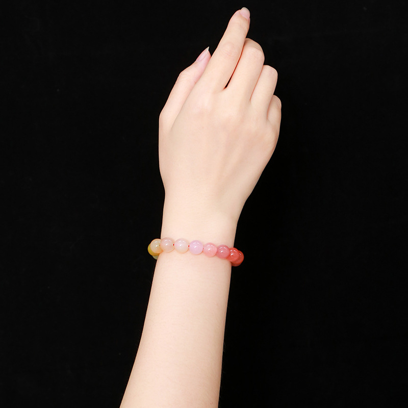 晶州珠宝 7A渐变彩色绯红盐源玛瑙手链时尚甜美夏季女生手串批发