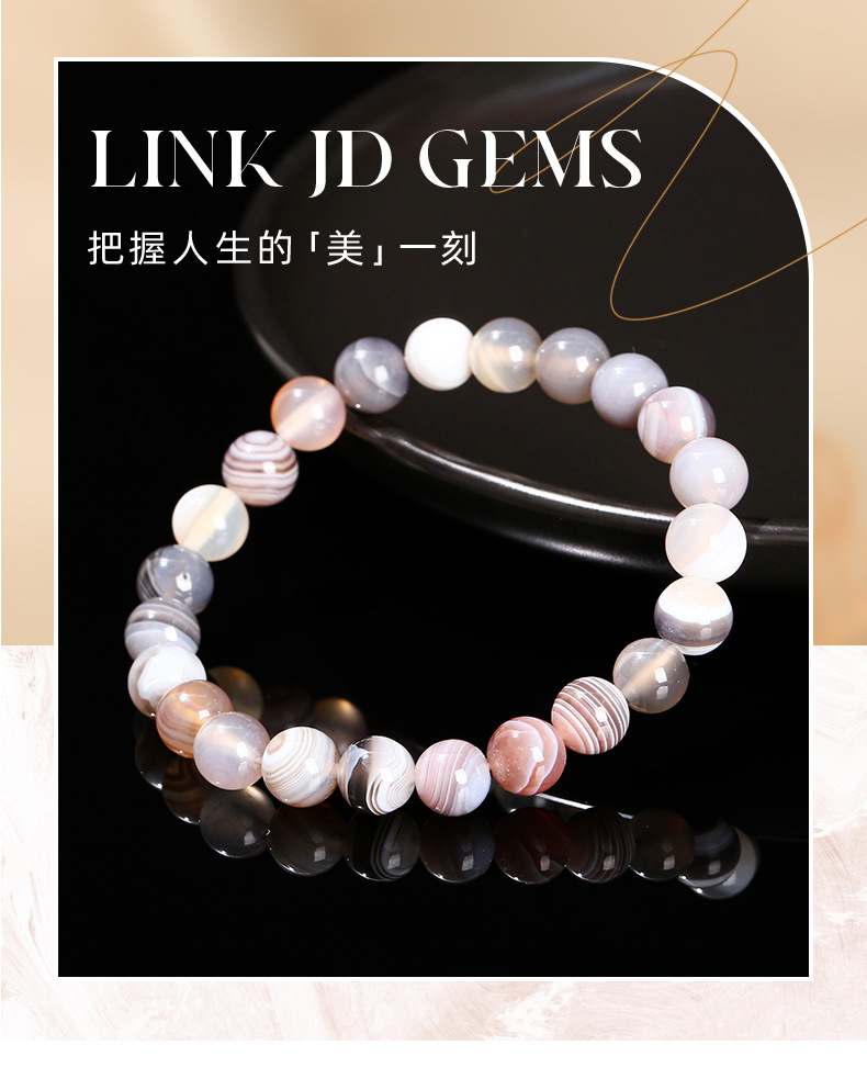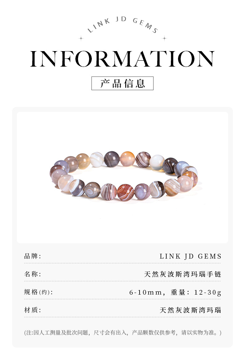 晶州珠宝 3A天然灰波斯湾玛瑙手链条纹缠丝玛瑙时尚简约手饰批发