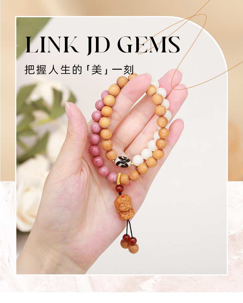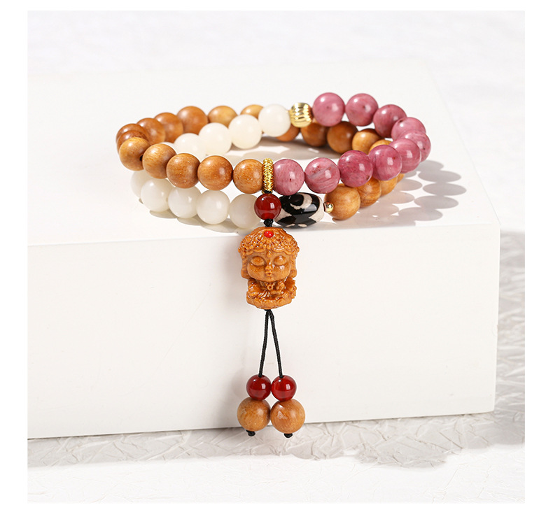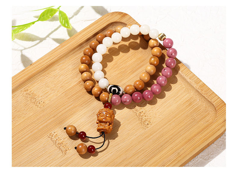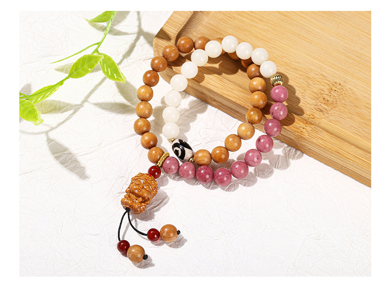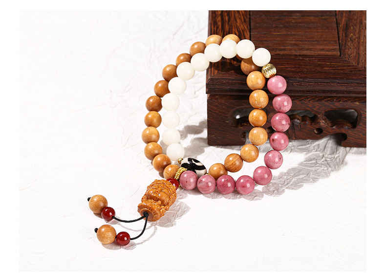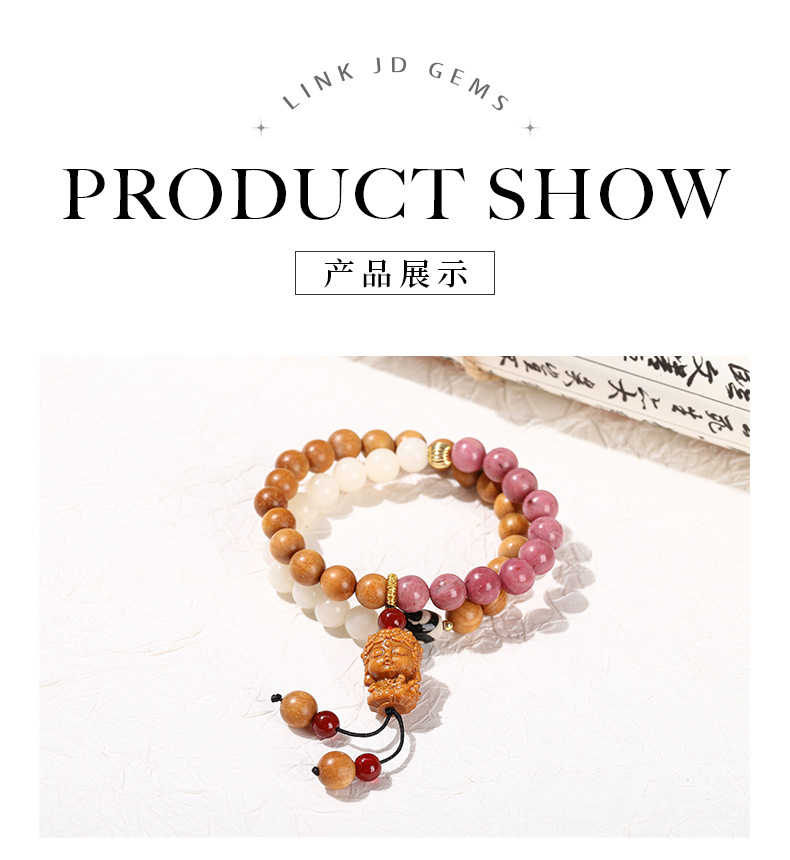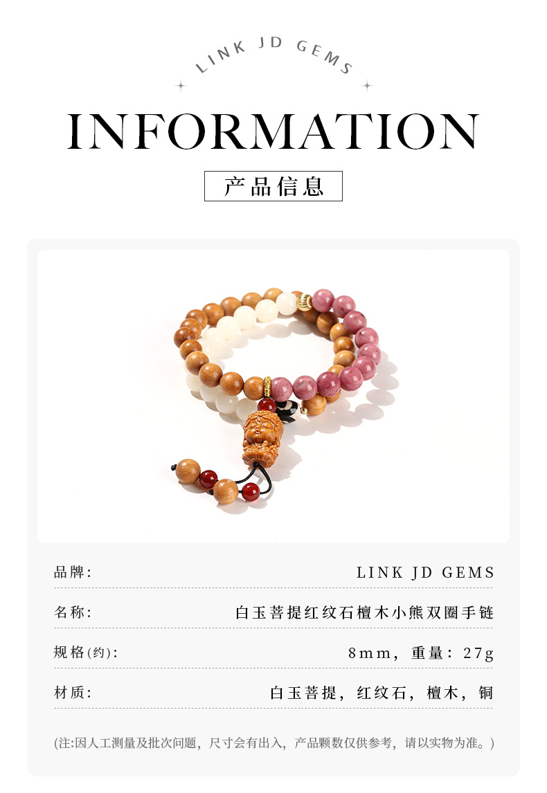 晶州珠宝 白玉菩提红纹石檀木度母双圈手链复古民族国风手饰批发