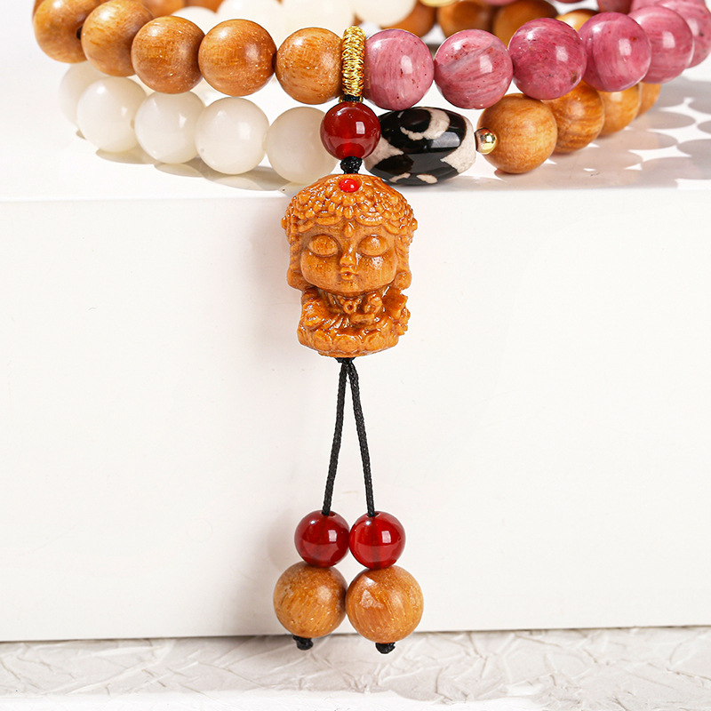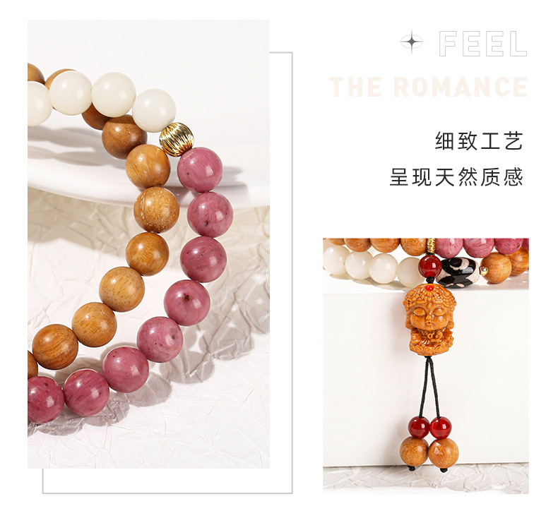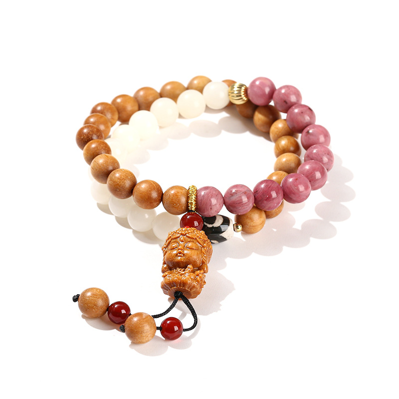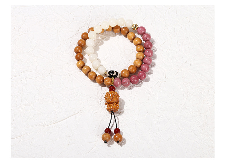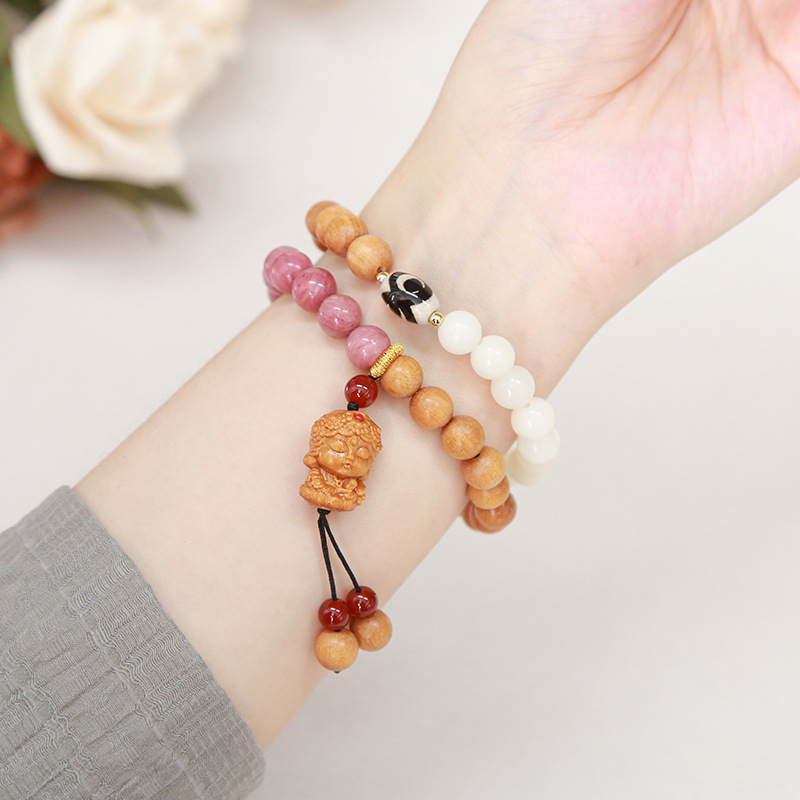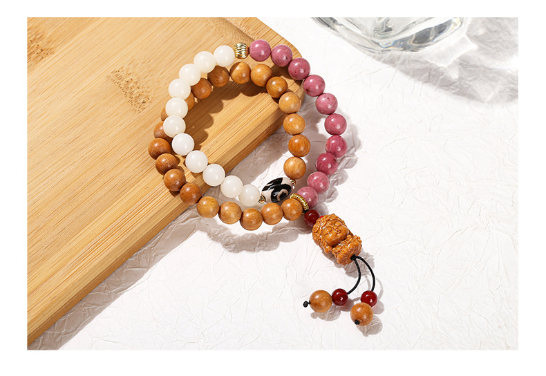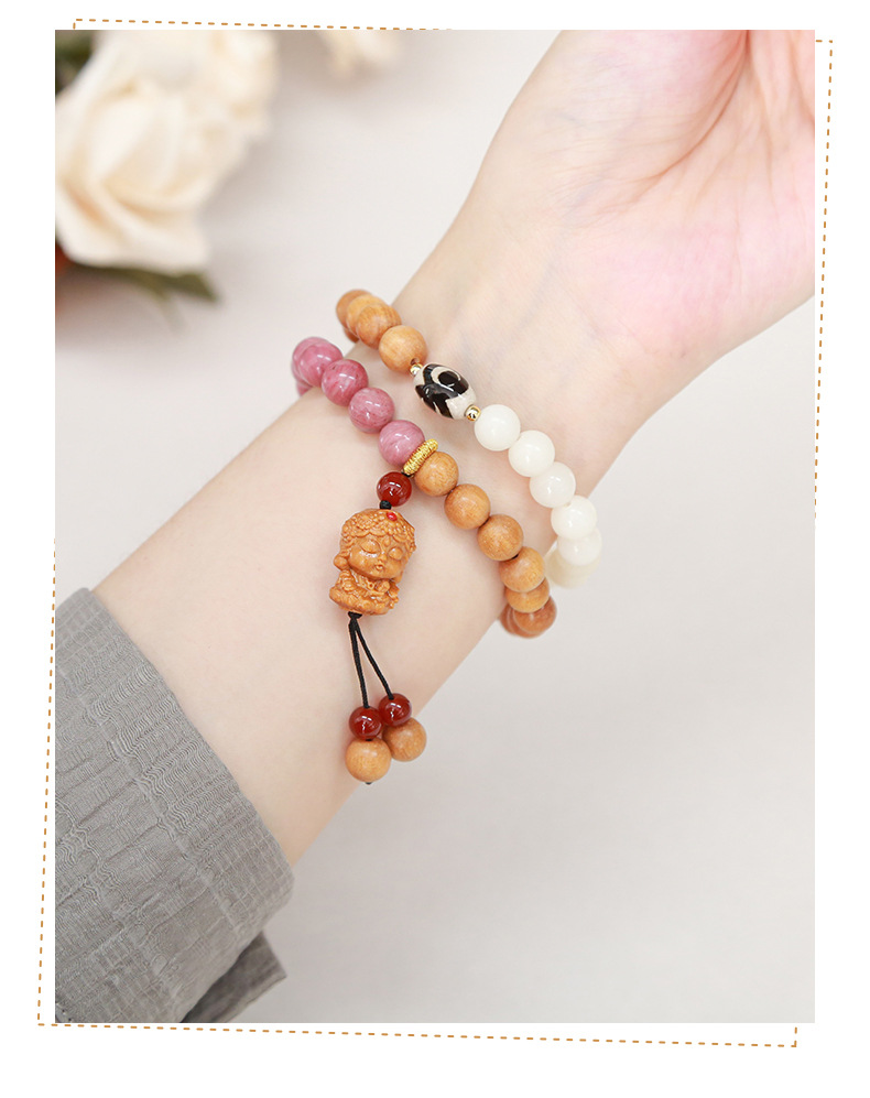 晶州珠宝 白玉菩提红纹石檀木度母双圈手链复古民族国风手饰批发