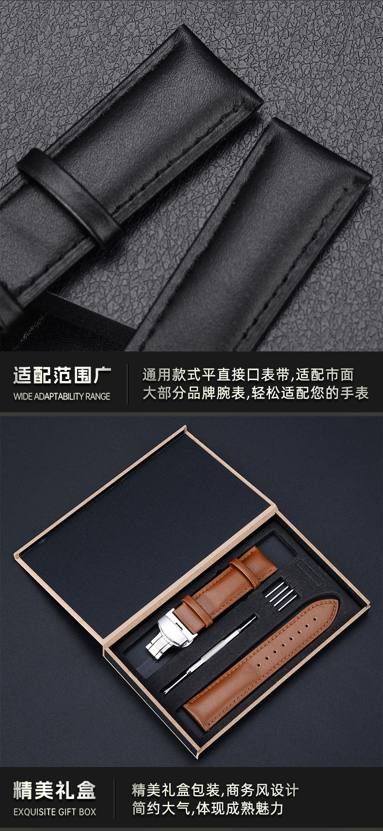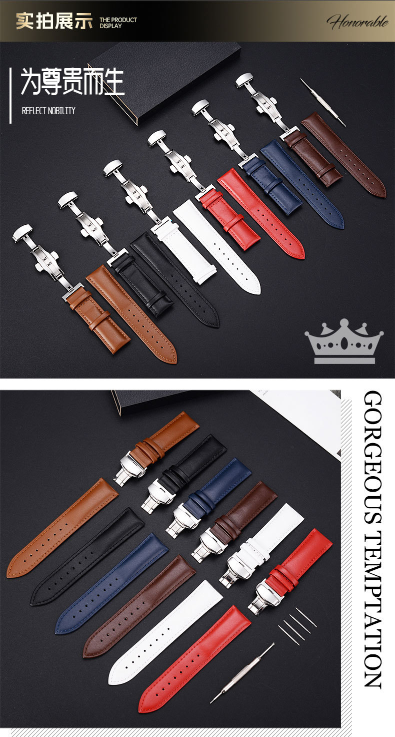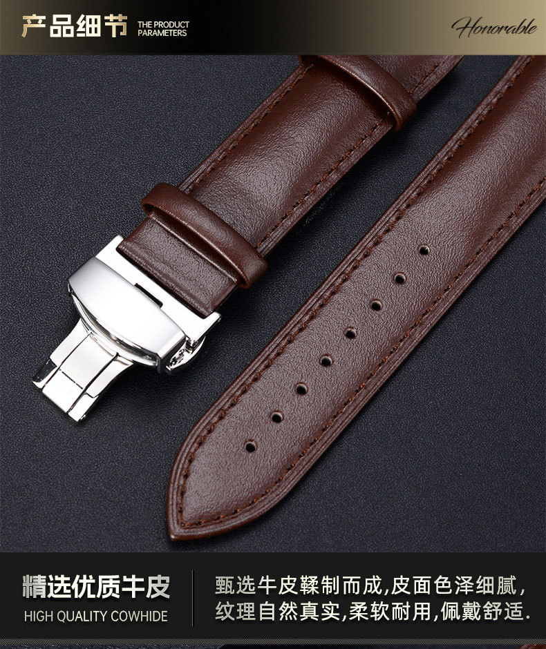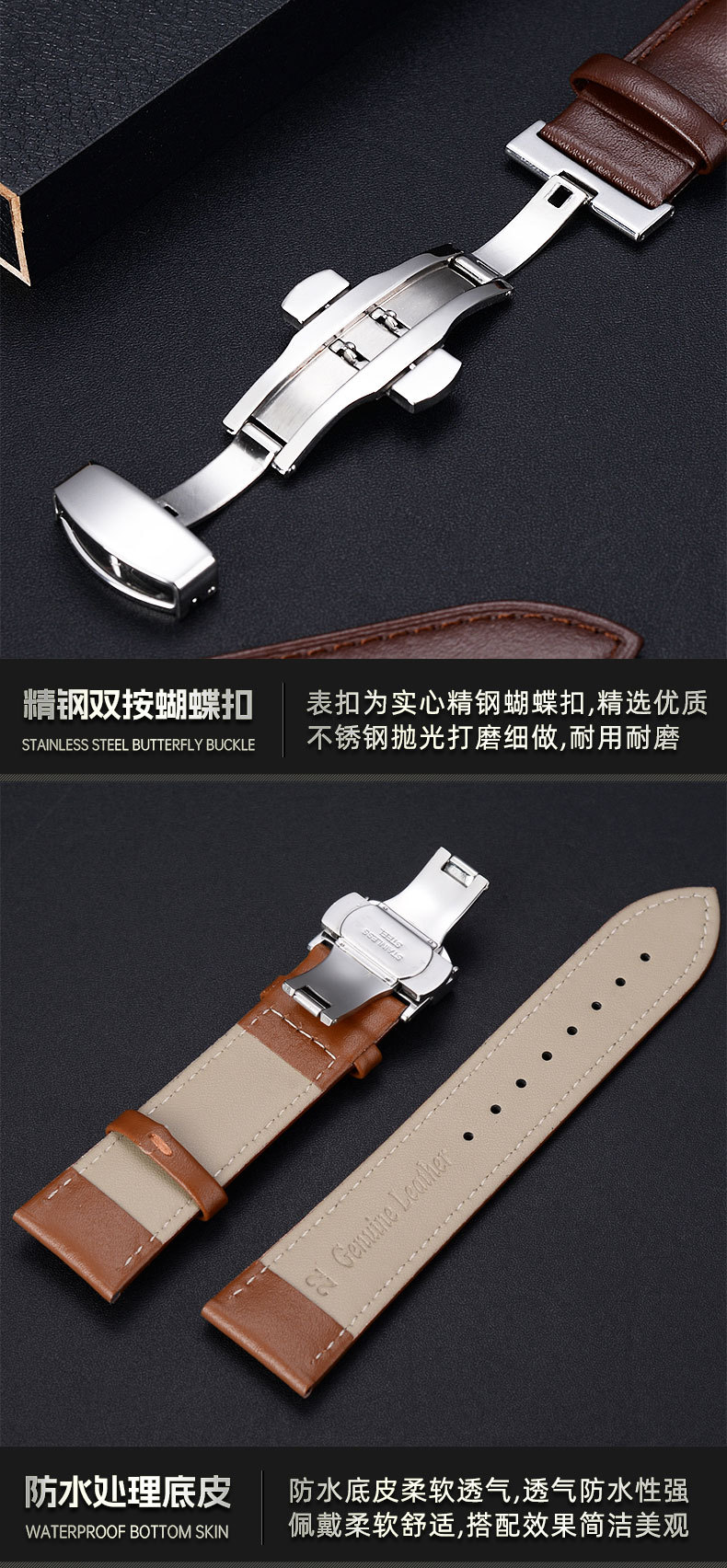 工厂现货真皮牛皮手表带双按蝴蝶扣表带适用苹果华为三星智能腕带
