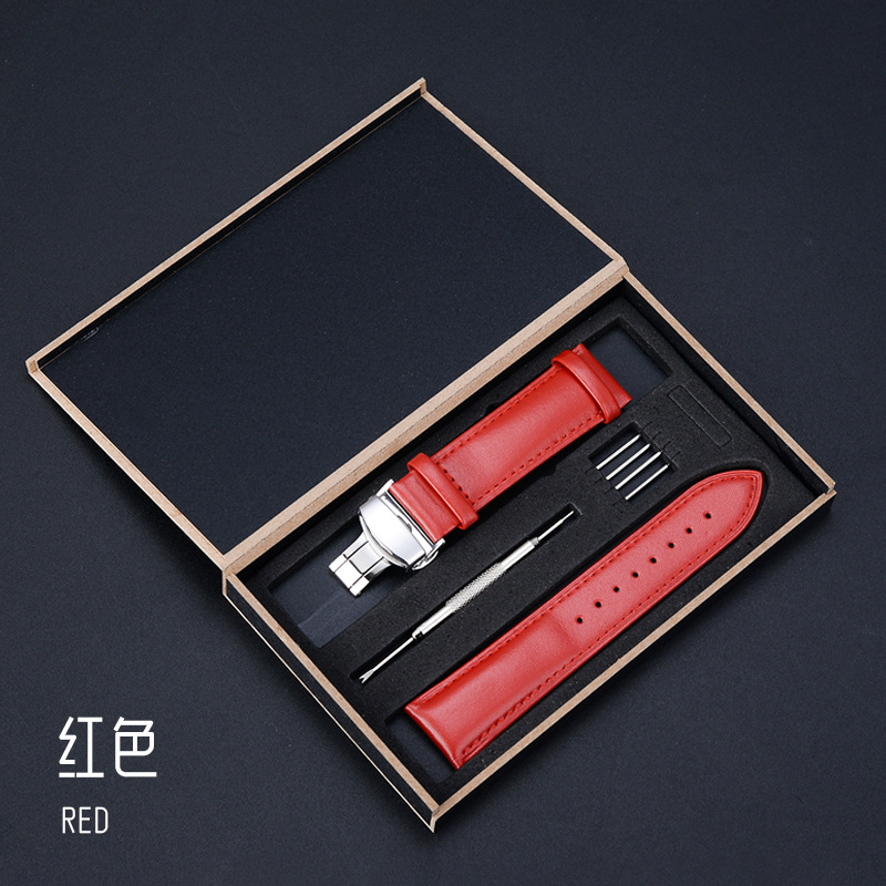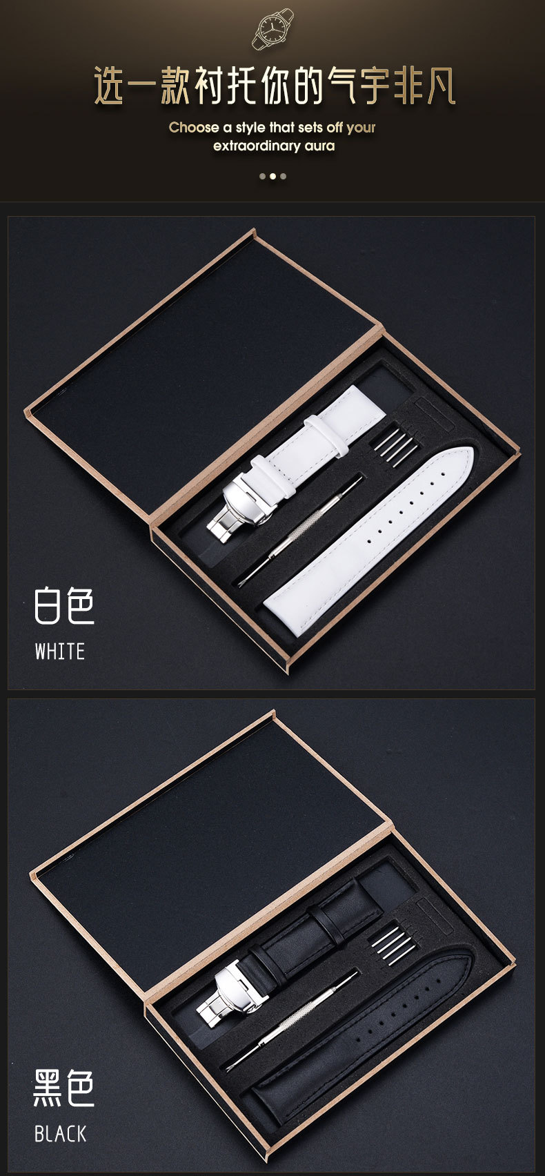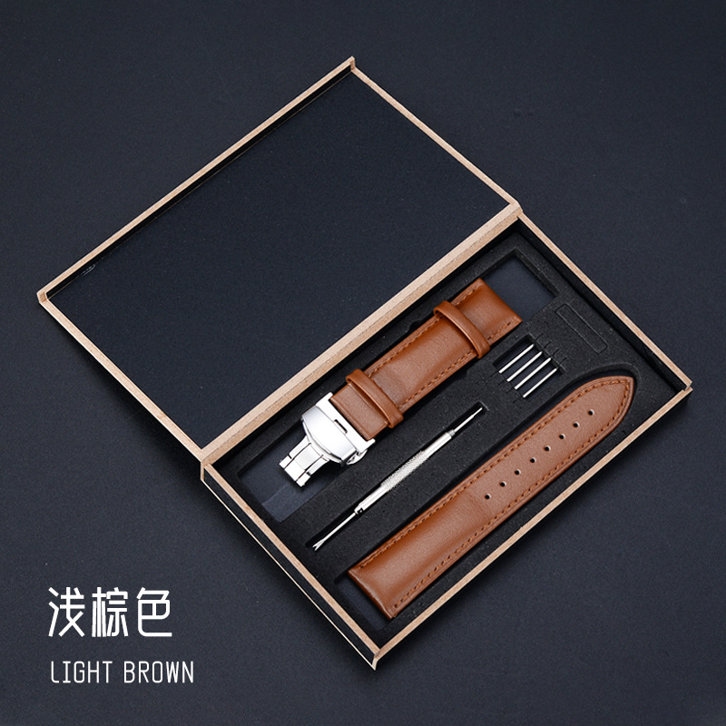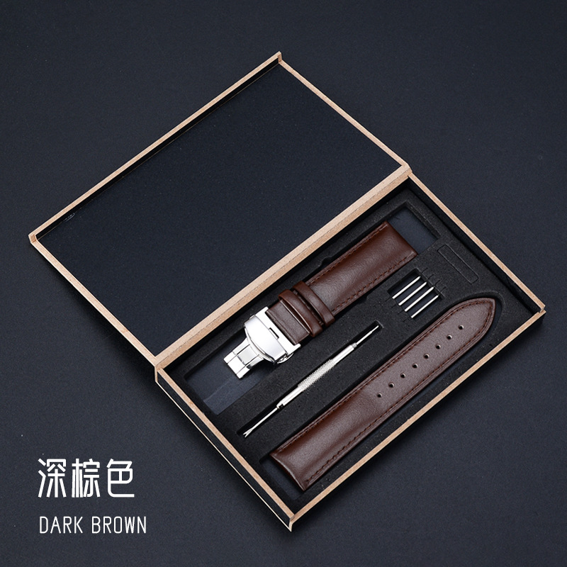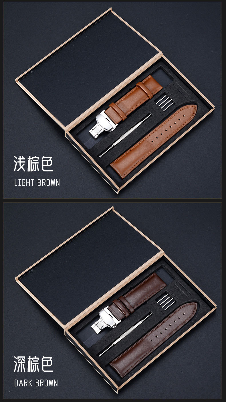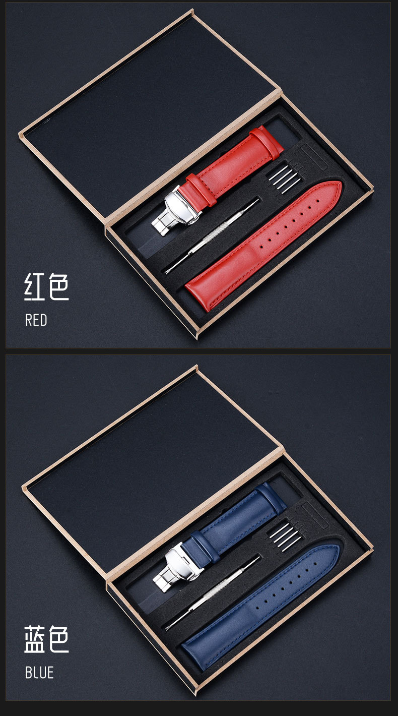 工厂现货真皮牛皮手表带双按蝴蝶扣表带适用苹果华为三星智能腕带
